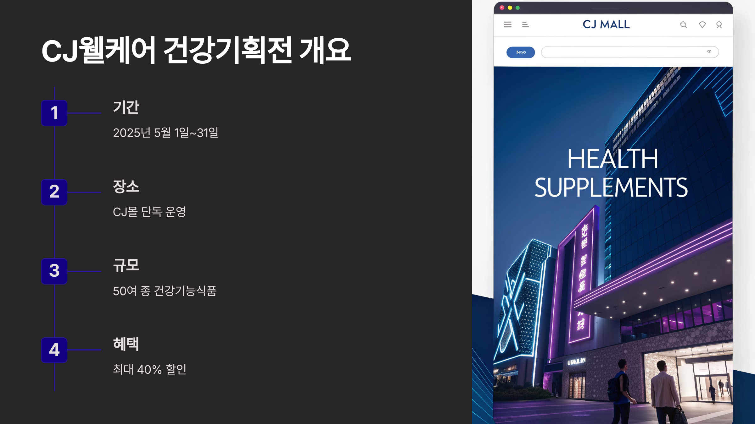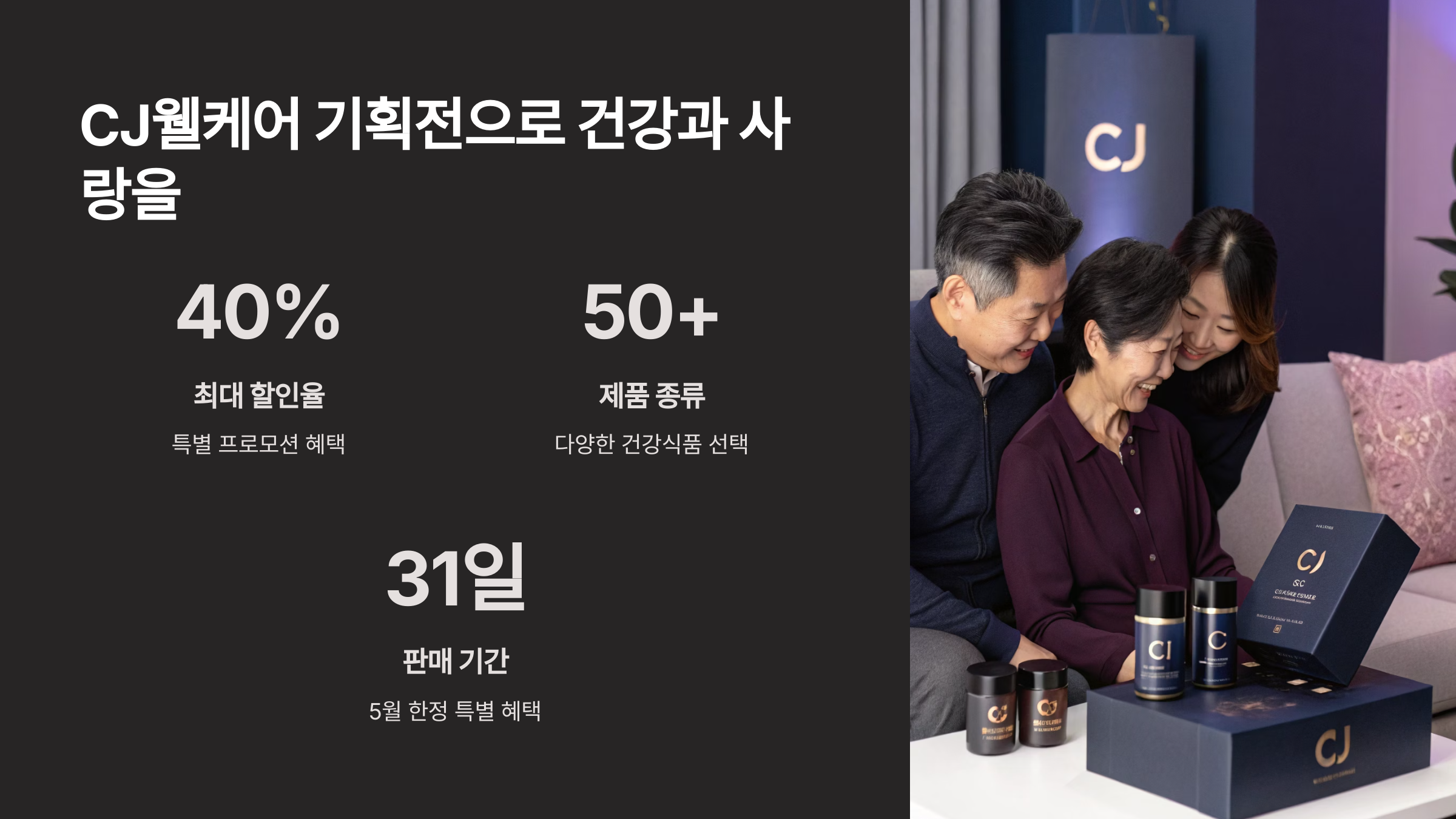 가족의 건강과 행복을 챙길 수 있는 완벽한 기회, 지금 바로 CJ몰에서 확인해보세요.