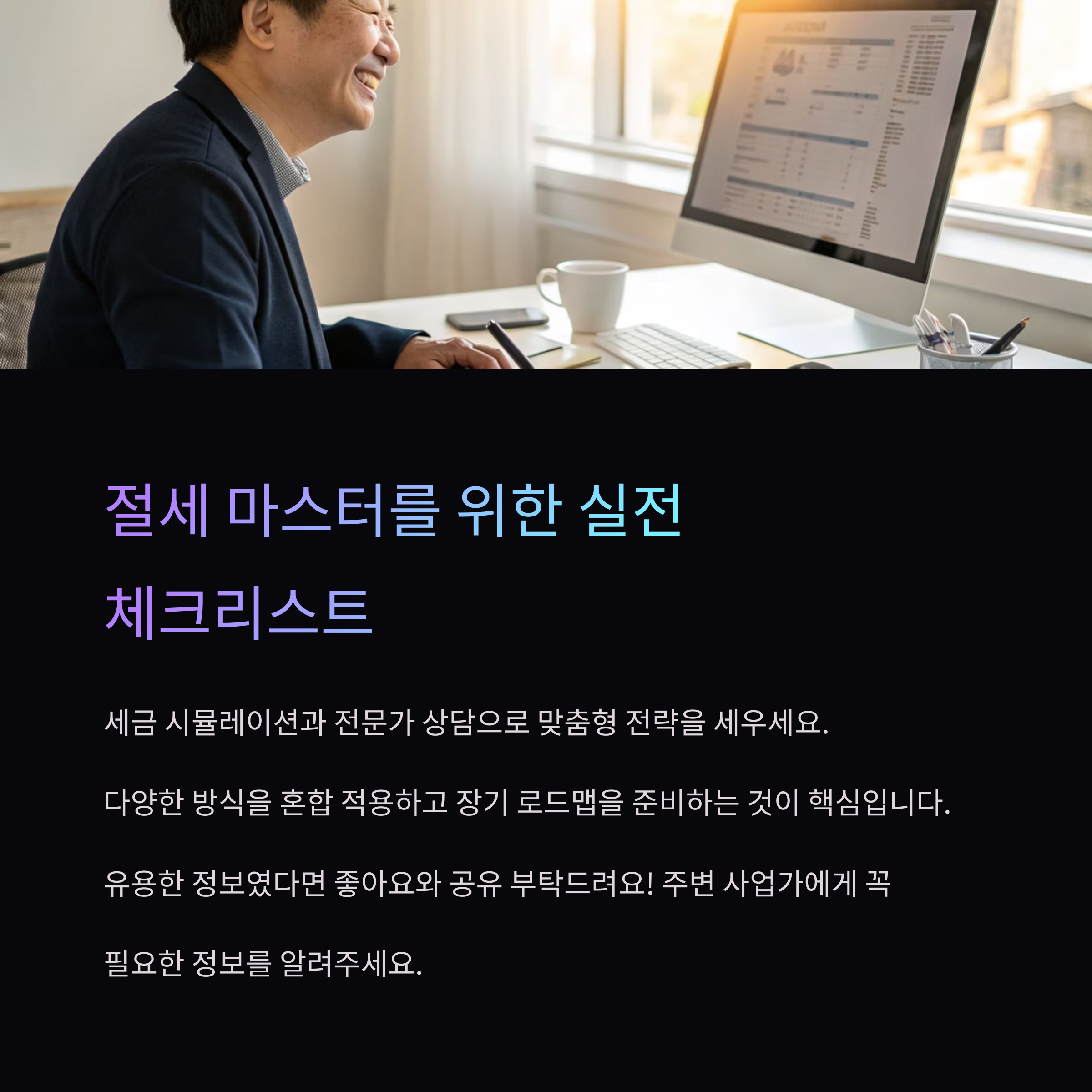 단기적인 절세를 넘어 장기적인 가업승계 플랜을 고려해야 합니다.