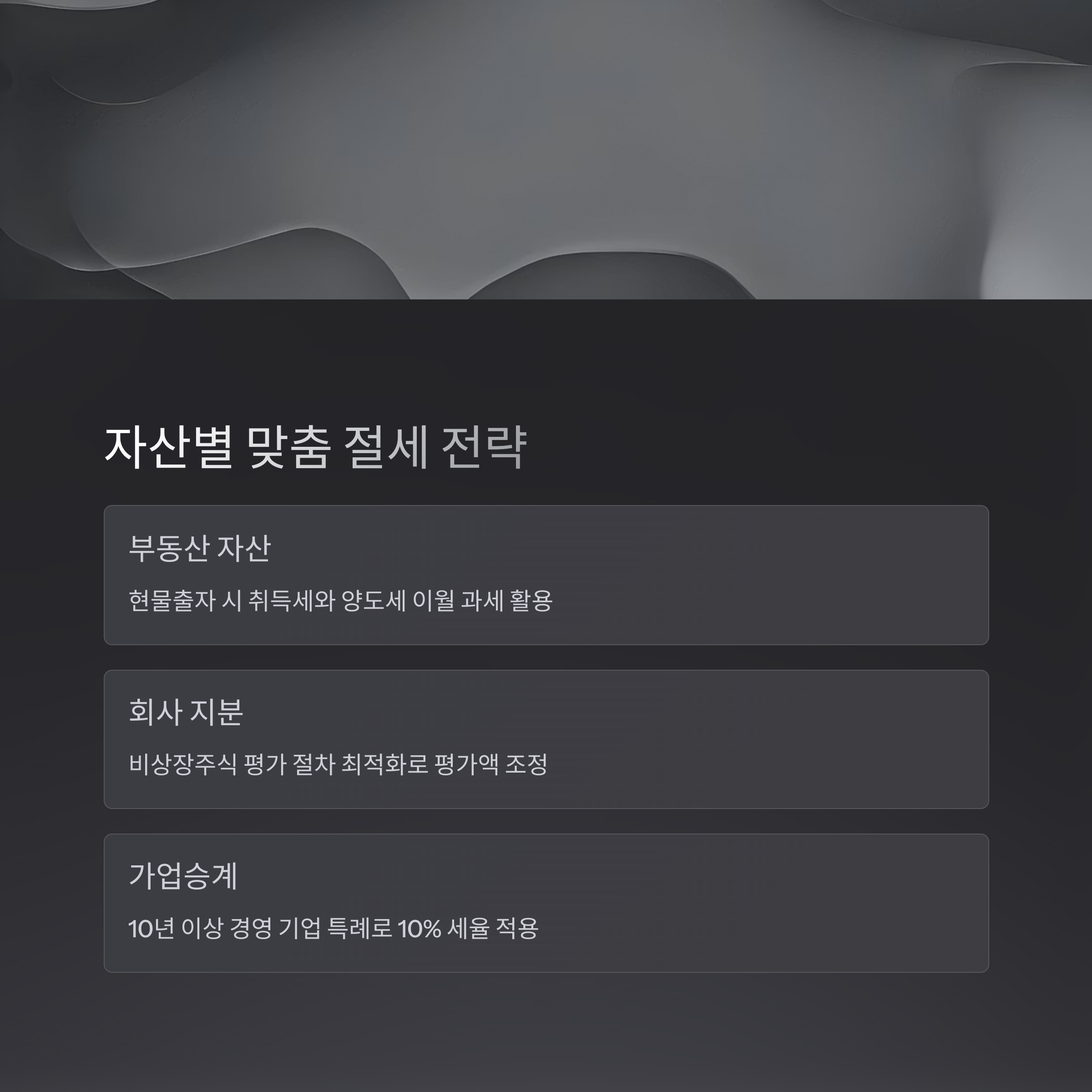 | 사전 준비 | 법인 구조 점검, 자산 진단 | 예상 세부담 최소화 |