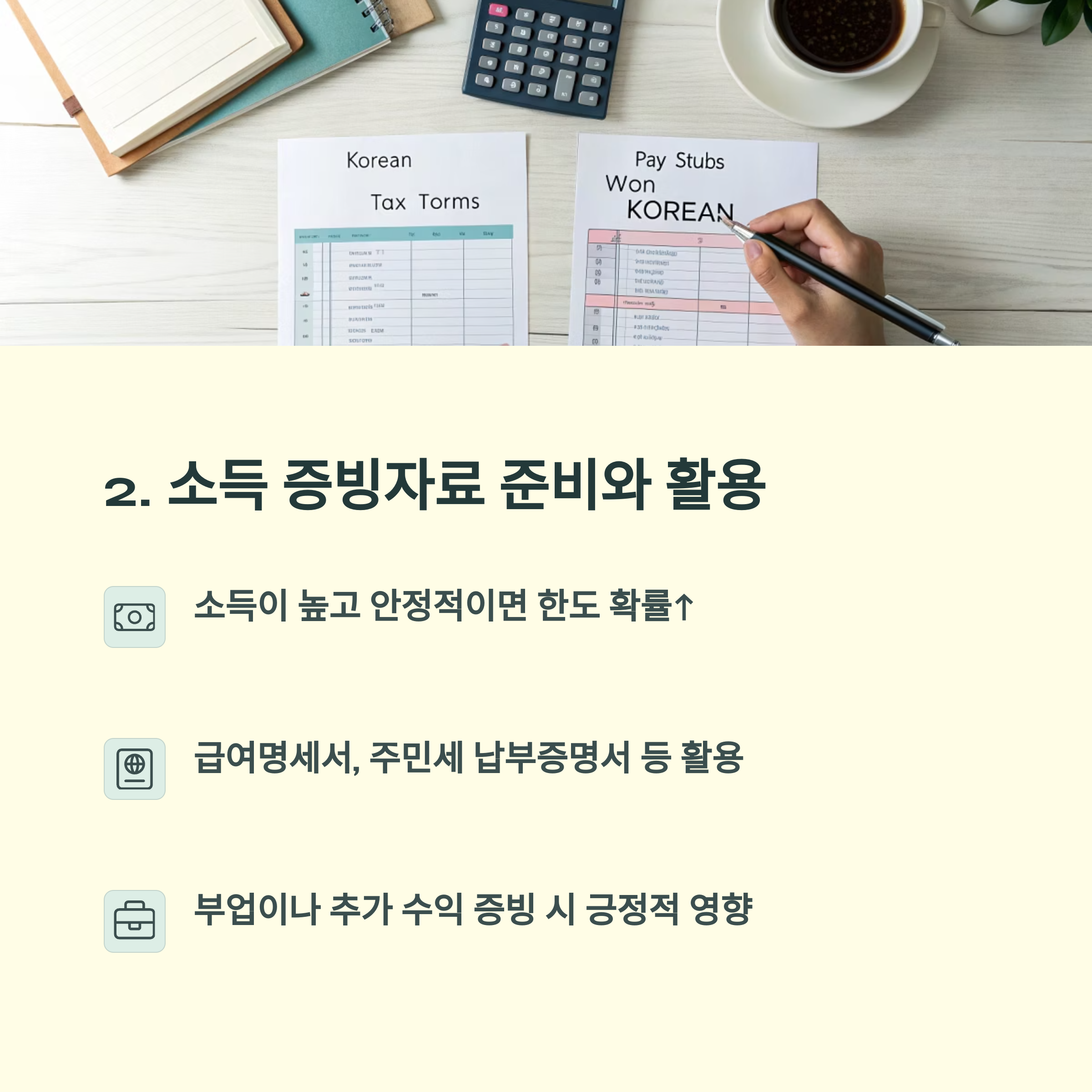 신용관리 습관, 소득증빙 자료, 기존 부채 정리 등 여러 요소들이 유기적으로 작용하죠.