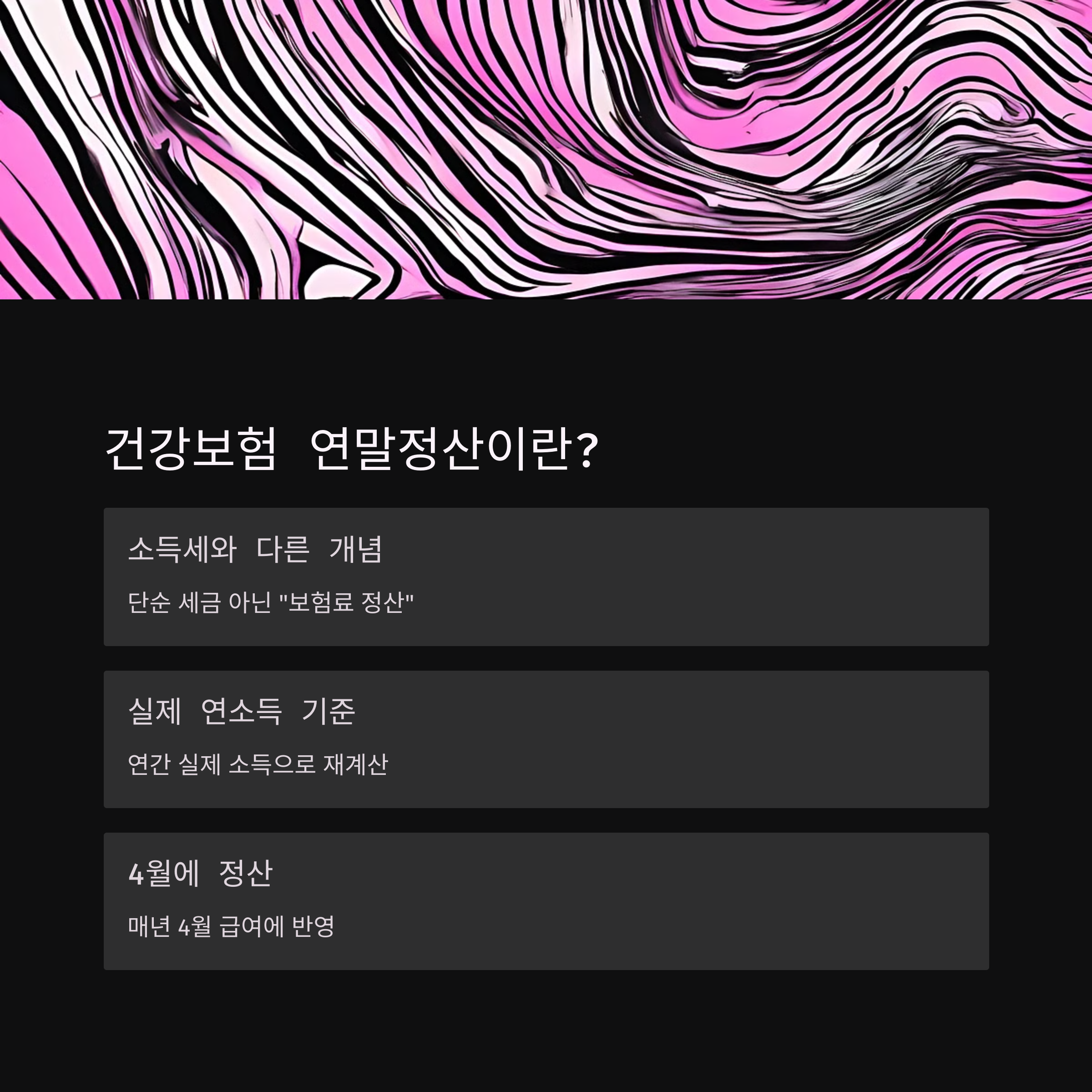 ‘연말정산’이라는 말 때문에 흔히 소득세 정산으로 오해하지만, 건강보험 연말정산은 정확히는 **“보험료 정산”**입니다.