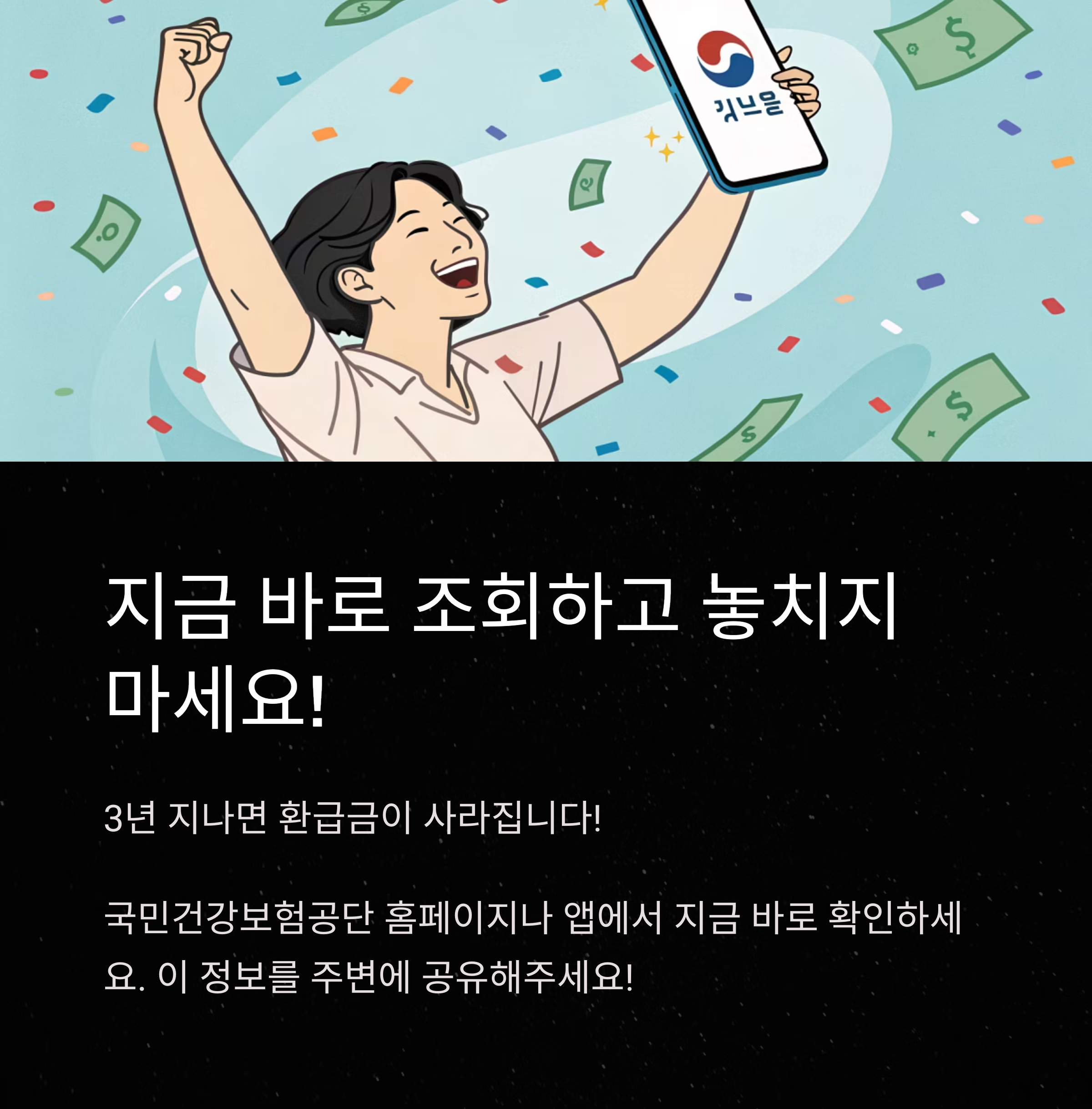📌 건강보험공단에서는 문자 또는 우편으로 환급 사실을 알려주기도 하지만,