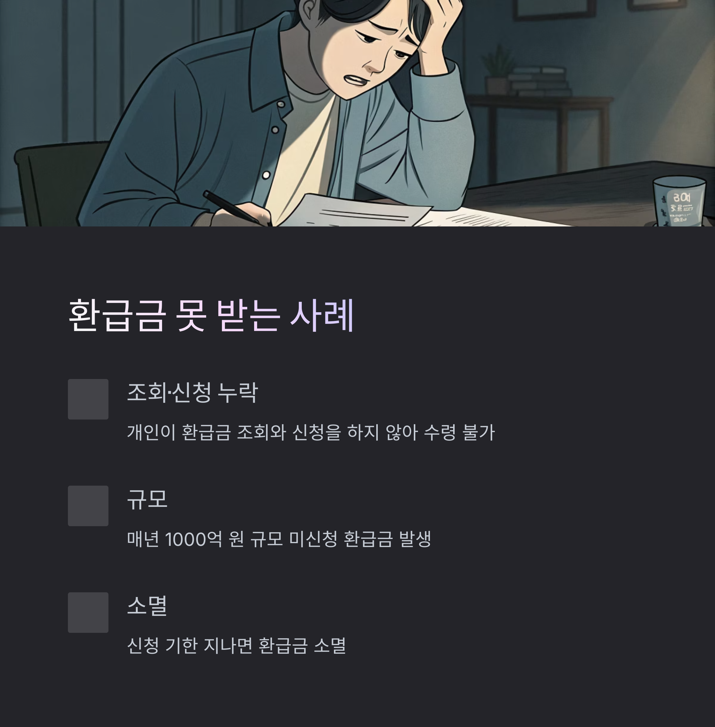 환급 대상임에도 불구하고 안내를 못 받거나 확인을 안 해서 수년간 찾아가지 않은 돈이 매년 수백억 원 이상 발생하고 있다는 사실, 알고 계셨나요?