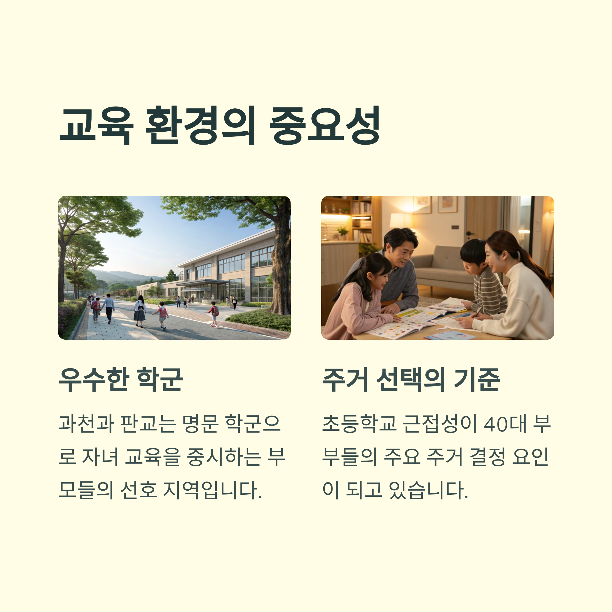 과천은 서울과 인접한 입지와 더불어 뛰어난 학군, 쾌적한 주거 환경으로 오랜 기간 주목을 받아온 지역입니다. 하지만 2020년 이후 집값이 급격히 상승하면서 실수요자들에게는 부담으로 작용하고 있죠. 특히 40대 부부에게 과천에서의 삶은 많은 결정을 요구합니다. 아이들의 교육을 위해 거주를 유지할 것인지, 아니면 좀 더 실리적인 지역으로 이전할 것인지 선택의 순간마다 고민이 깊어집니다. 이러한 상황에서 부동산 매입 여부나 전세 유지 결정은 단순한 경제 문제를 넘어서 가족의 미래와 직접적으로 연결되어 있기에 보다 신중한 접근이 필요합니다.