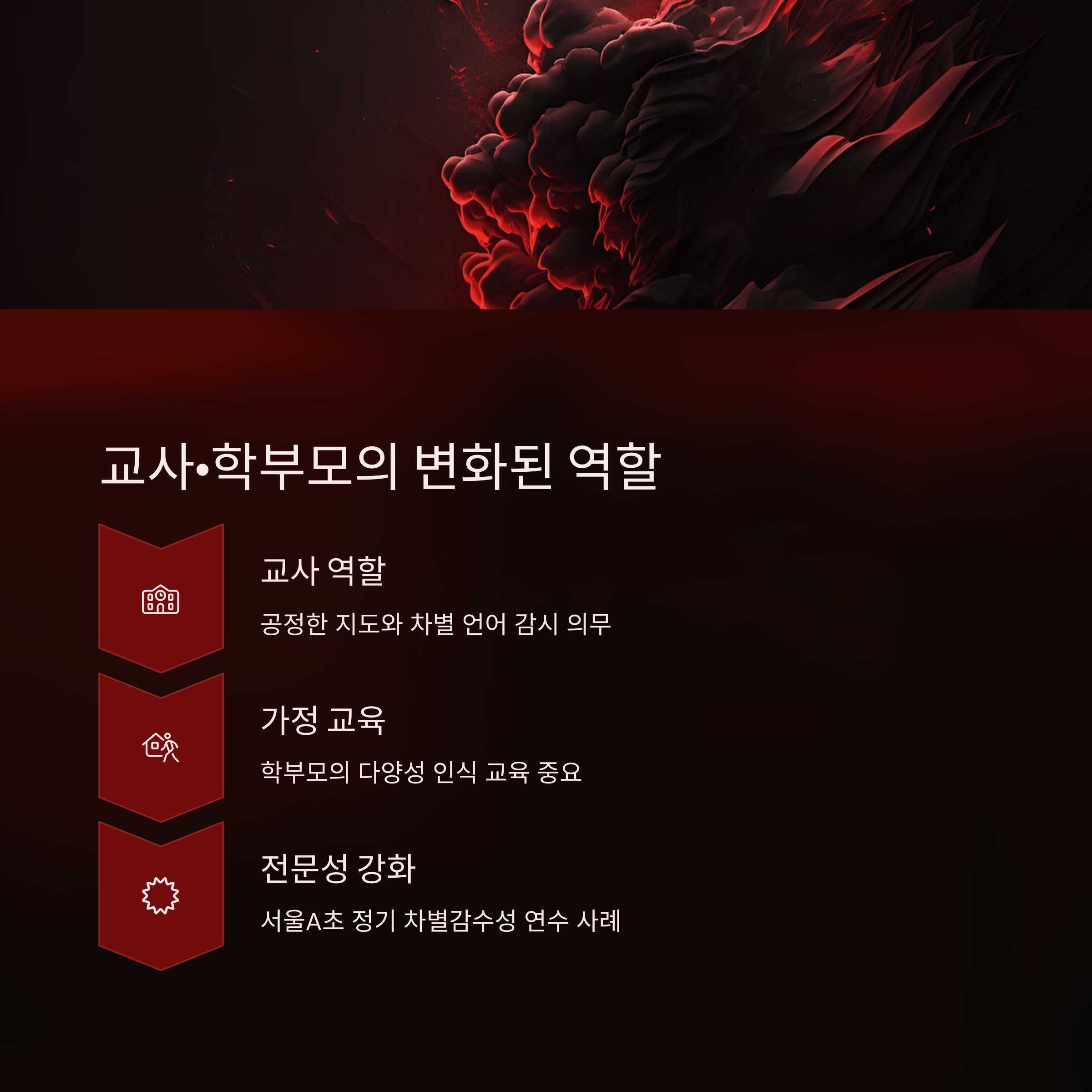교사, 학생, 학부모 모두가 함께 노력한다면 차별 없는 교육 환경은 결코 먼 이야기가 아닐 거예요.