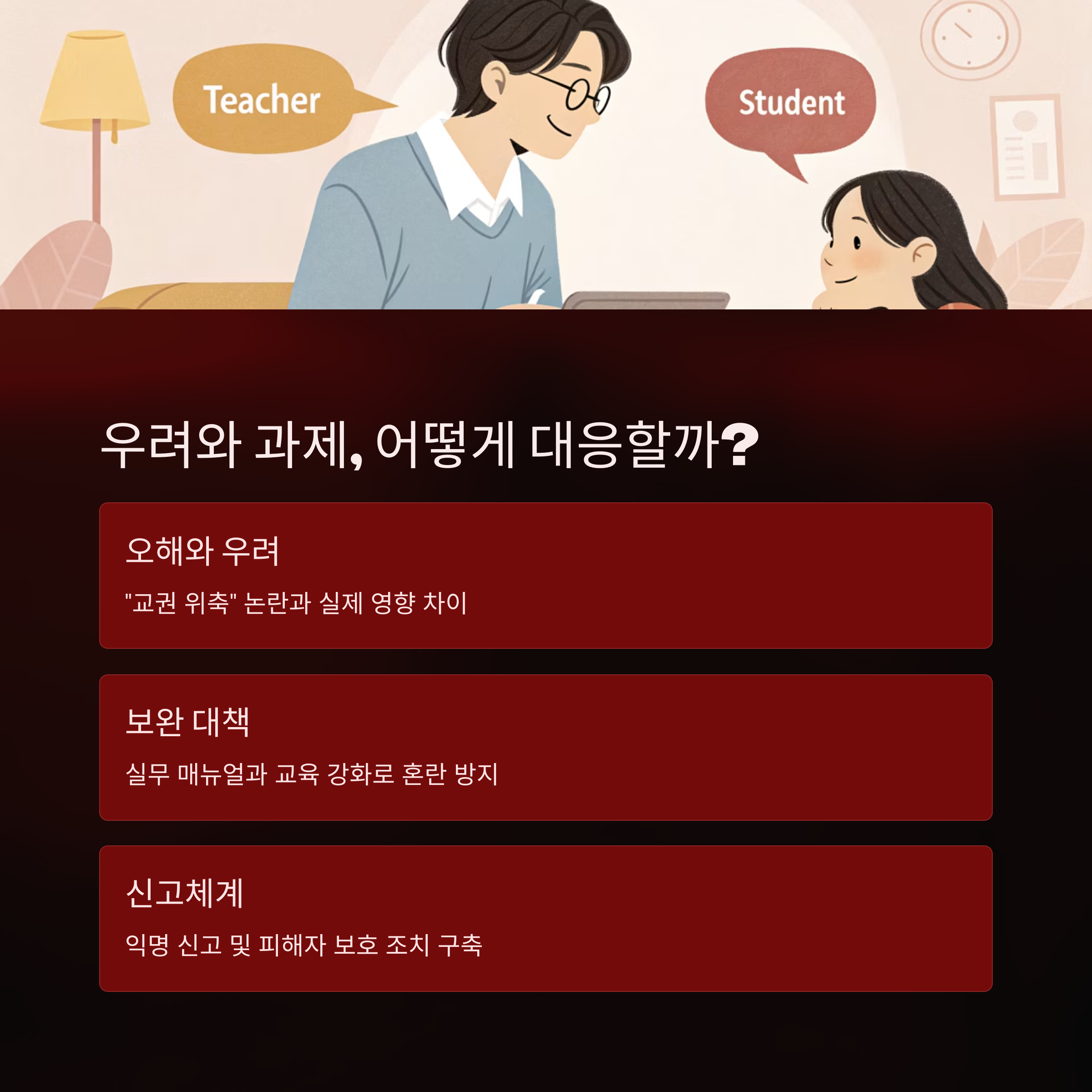 교사와 학생 모두가 차별 없는 환경에서 교육받고 성장할 수 있도록 만드는 것이 이 법안의 핵심입니다.