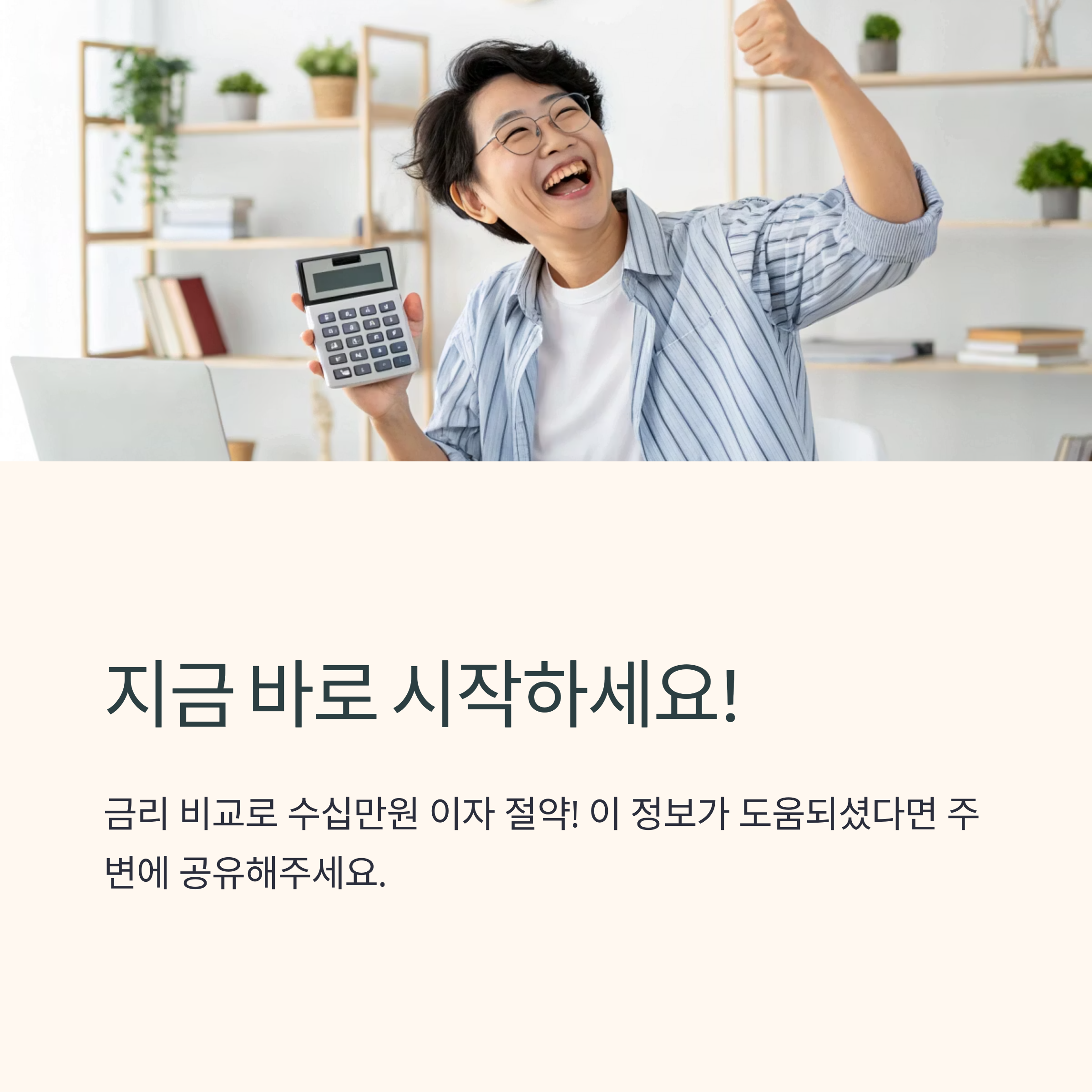 오늘 소개해드린 금리 비교의 중요성, 정말 와닿으셨죠? 작은 금리 차이 하나에도 수십만원이 절약될 수 있다는 사실은 꼭 기억해주세요. 특히 대출을 앞둔 분들이라면, 꼼꼼한 금리 비교는 선택이 아닌 필수입니다. 다양한 금융 플랫폼과 정보를 활용해서 똑똑한 소비자 되시길 바랄게요. 앞으로도 이런 실속 있는 정보들 자주 나눠드릴게요. 함께 절약하고, 현명한 선택 하세요!