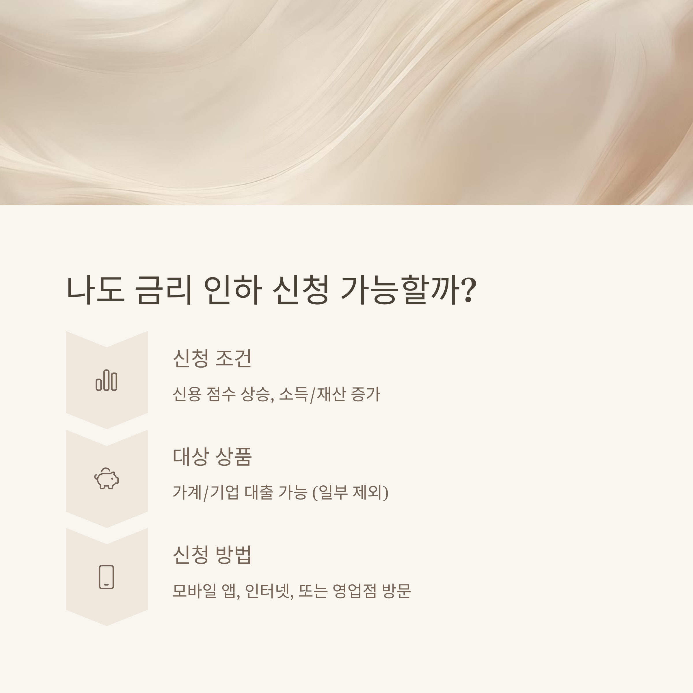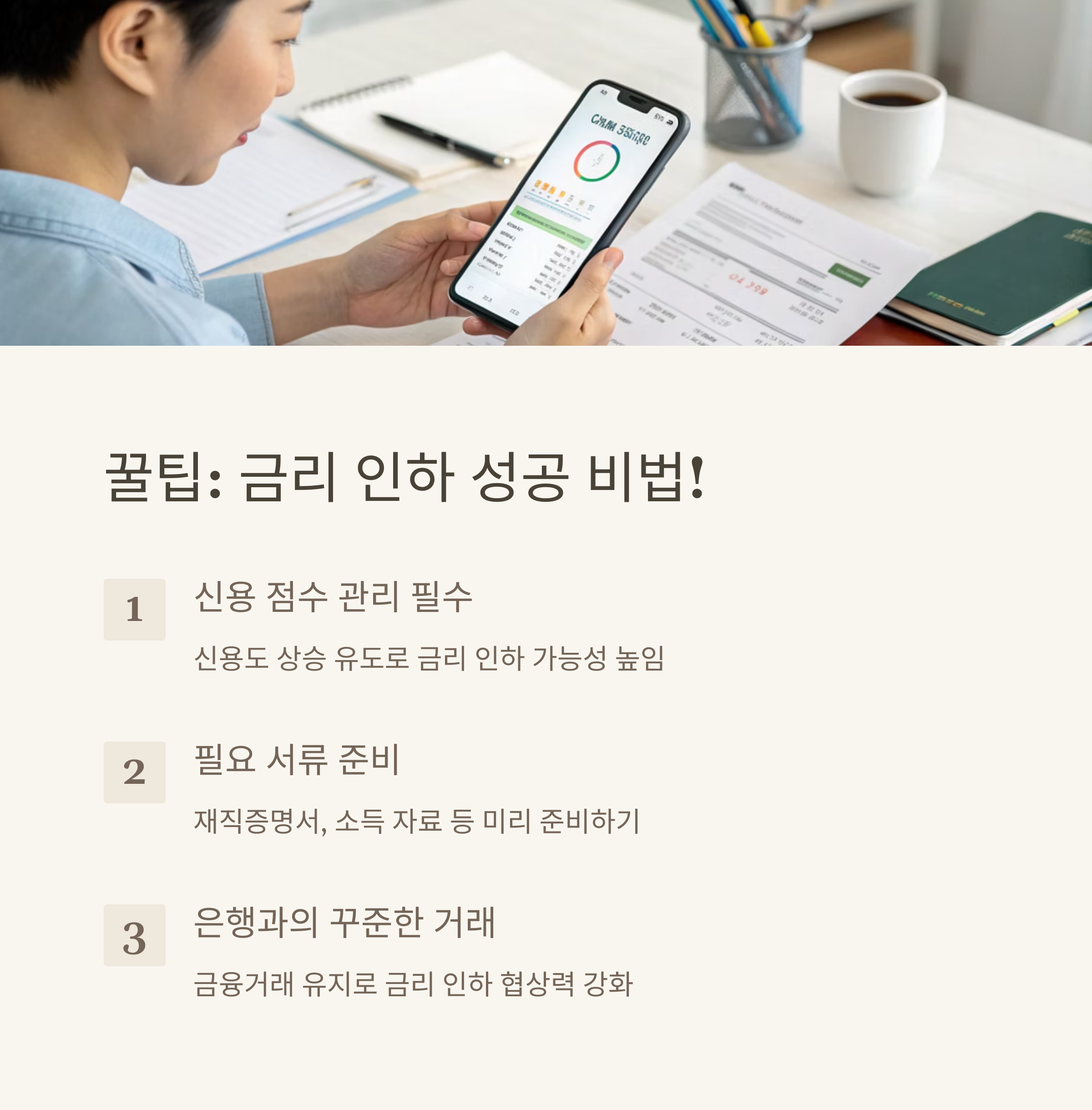 금리 인하 요청은 누구에게나 열려 있으며, 은행과의 꾸준한 소통과 준비가 핵심입니다.