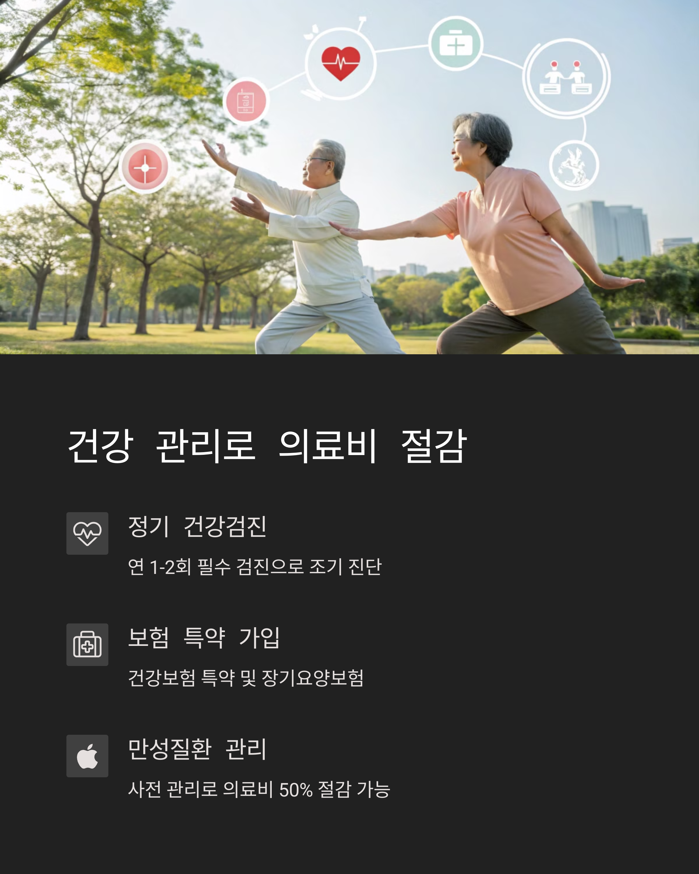 | 건강 관리 | 노년기 의료비 부담을 줄이기 위한 준비 전략 |