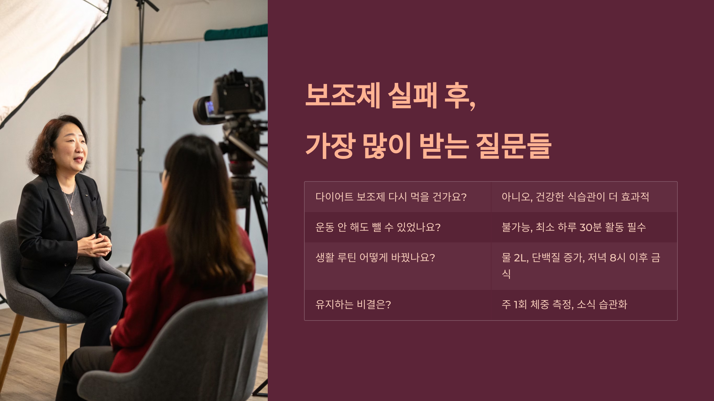 “보조제는 다이어트를 ‘보조’할 뿐,주도권을 넘기면 반드시 실패합니다.”