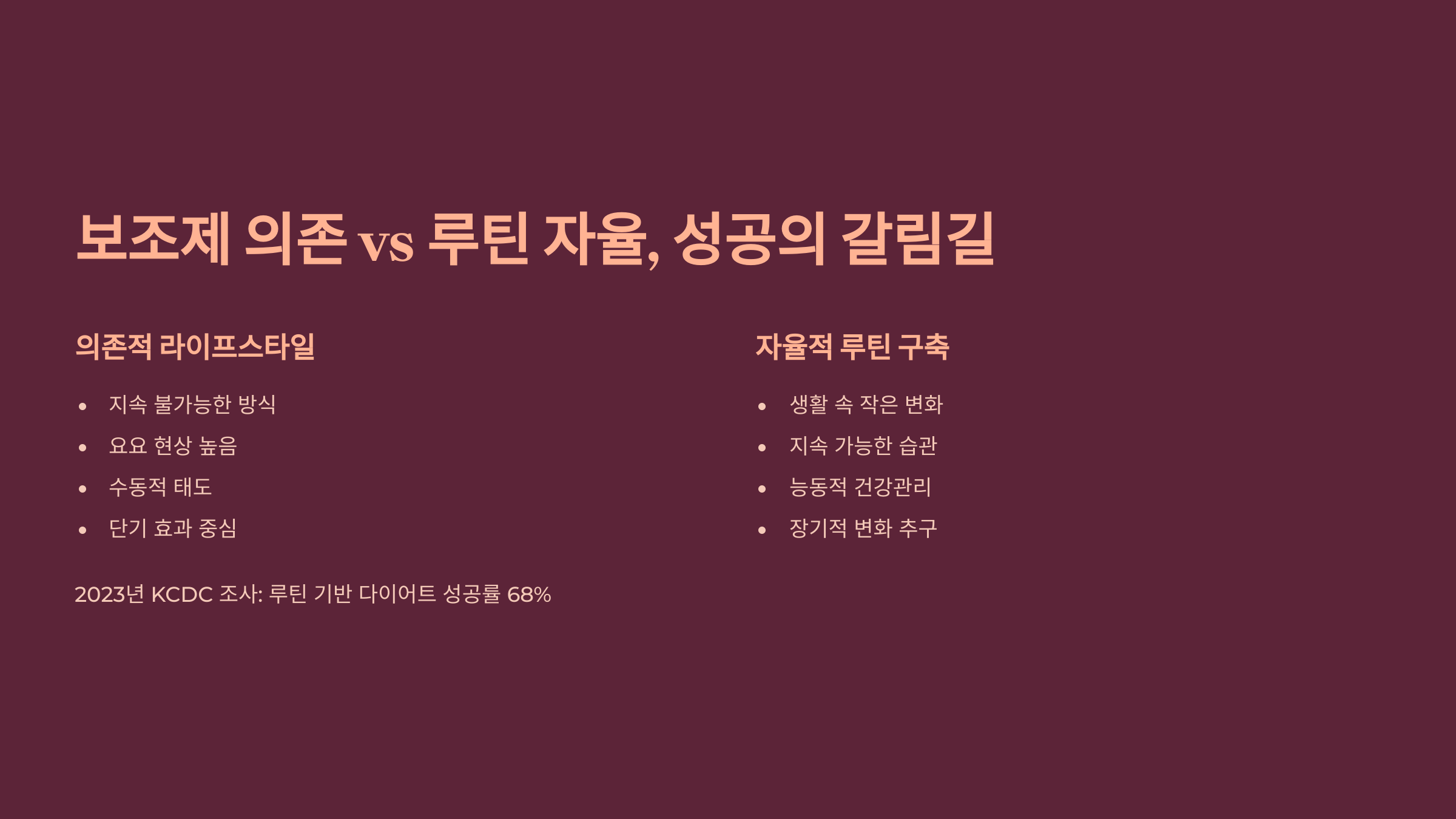 - 보조제 의존 vs 루틴 자율, 성공의 갈림길