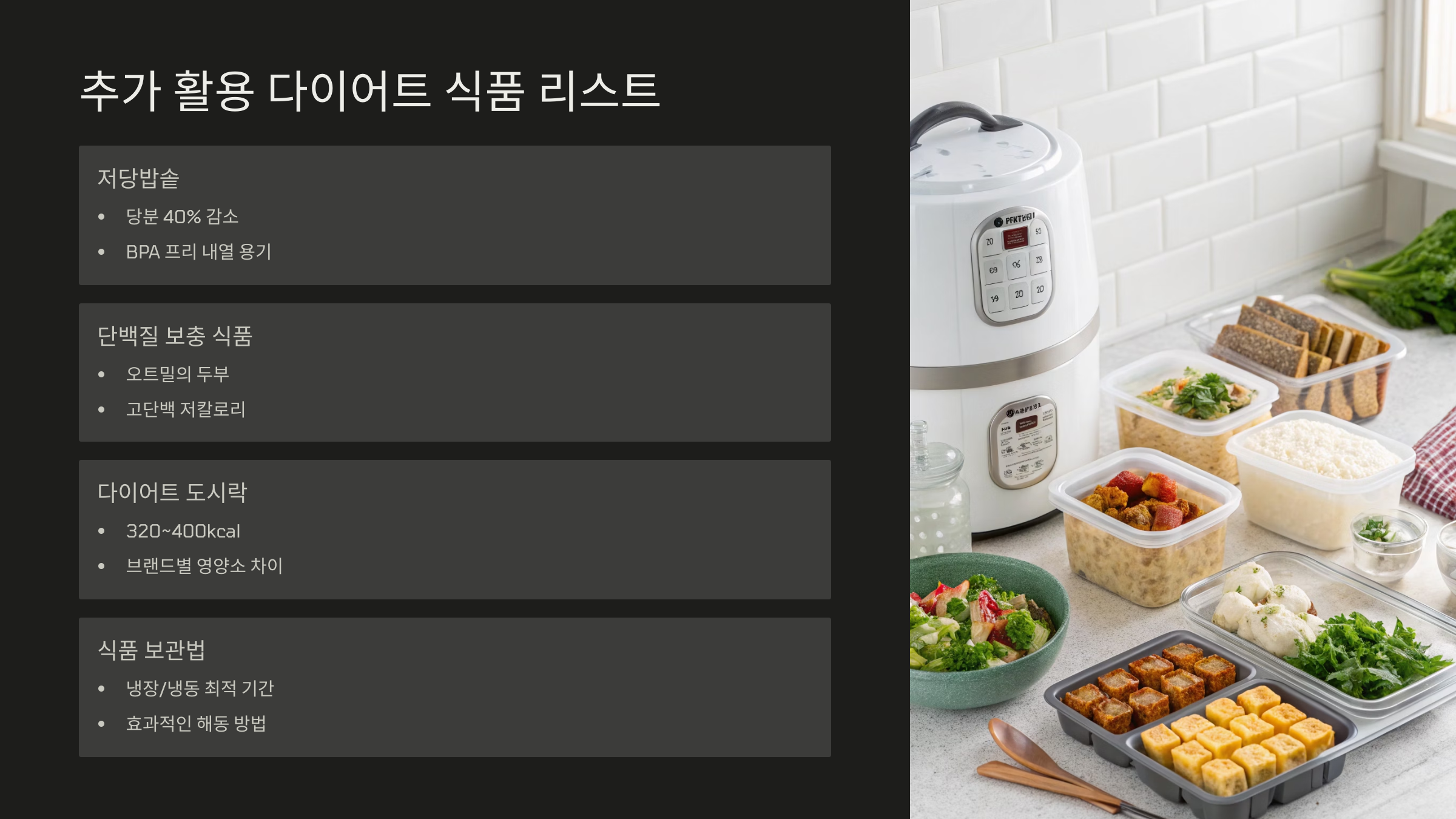 "전자레인지 하나로 완성하는 3식 플랜"으로 무리 없이 다이어트를 이어갈 수 있습니다.