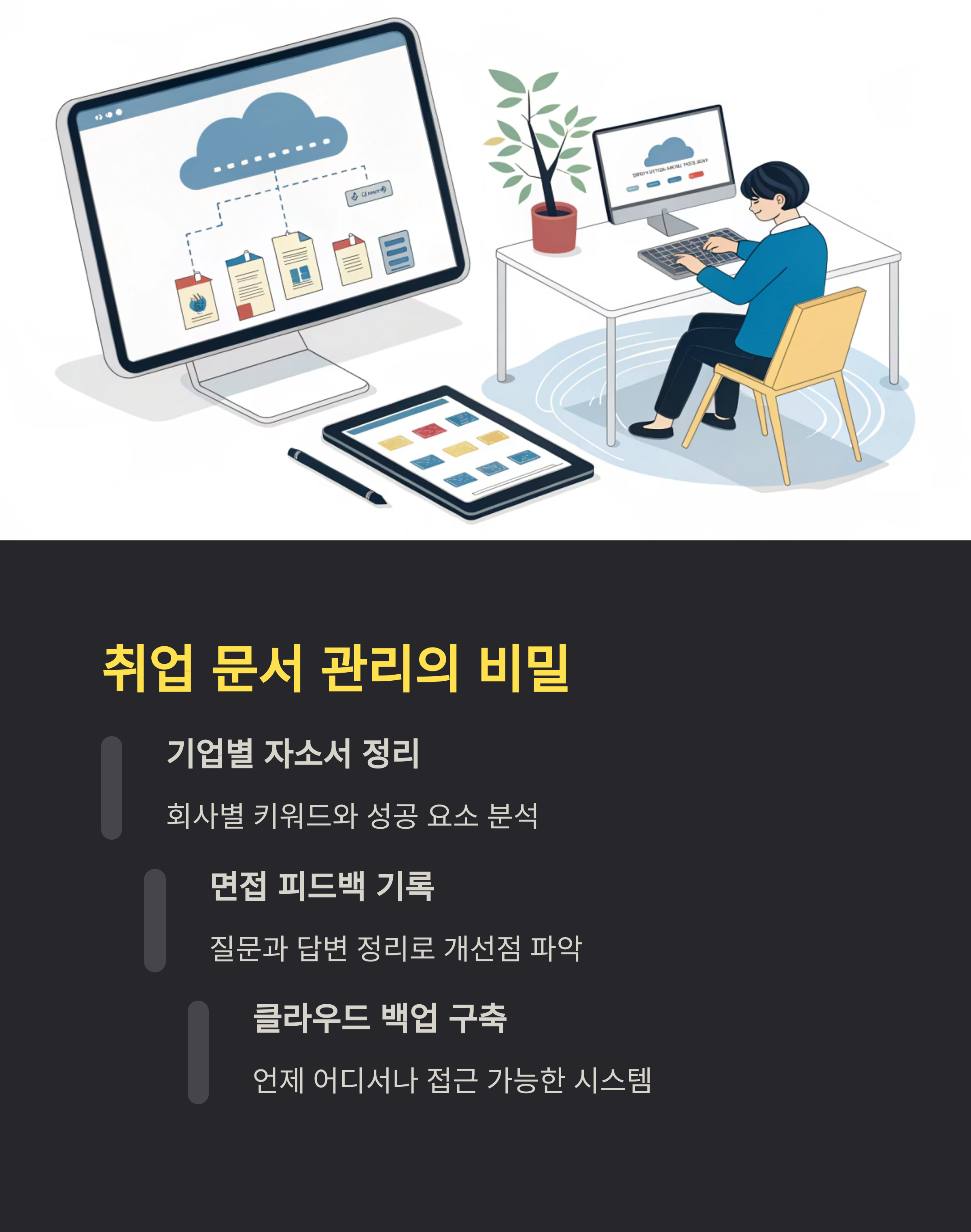 취업 문서를 정리하고 백업하는 습관이 필수라고 강조됩니다.