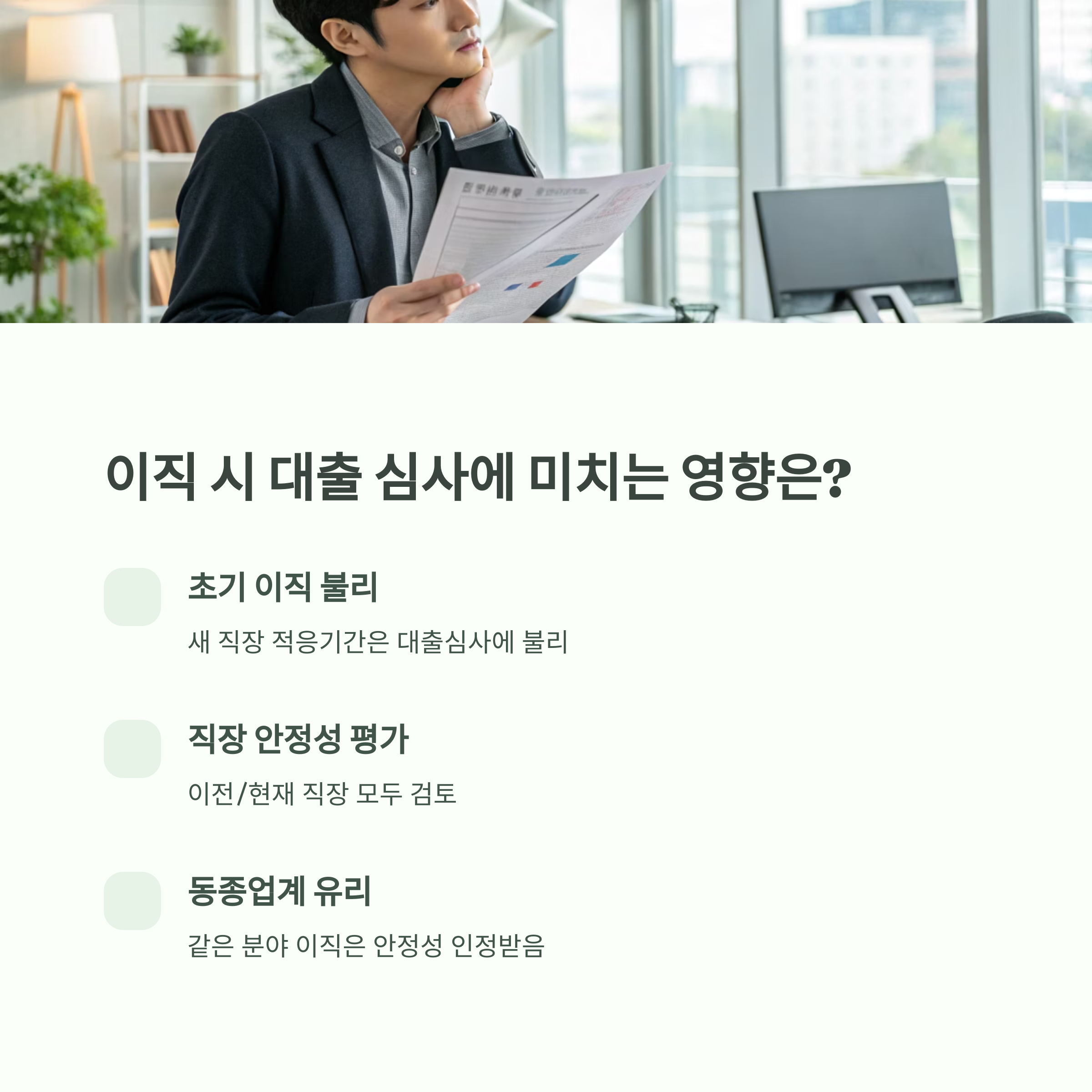 | 재직기간 6개월 미만 | 대출 심사 불리 | 고금리 적용 가능성 |