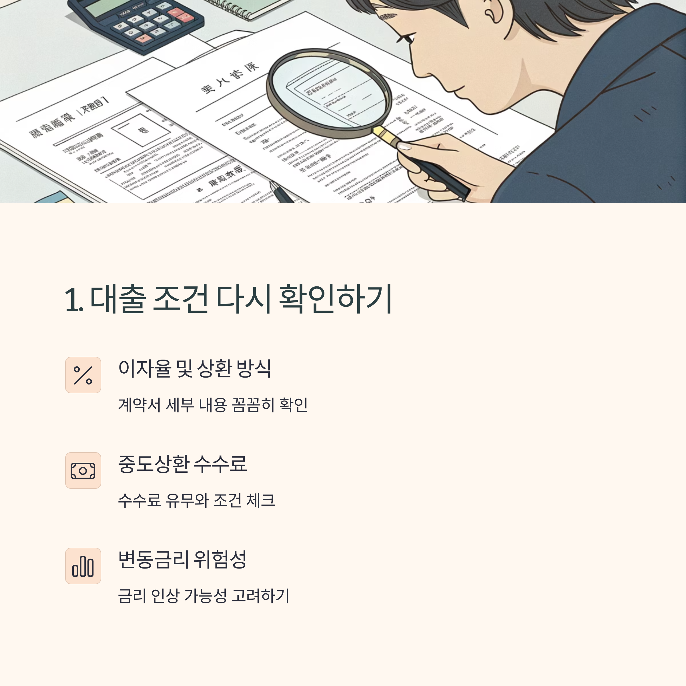 이자율, 상환 방식, 수수료를 꼼꼼히 확인하세요.