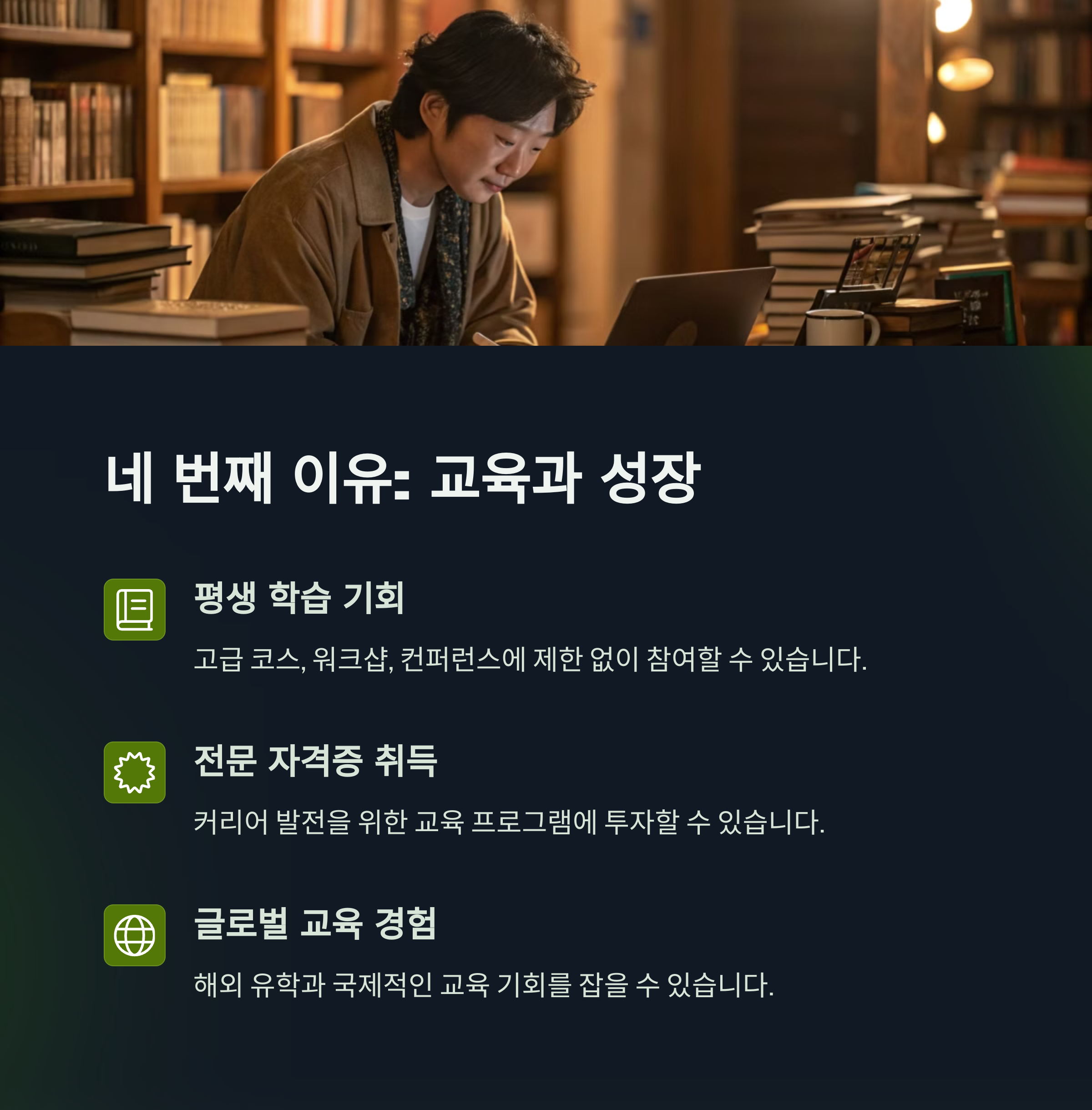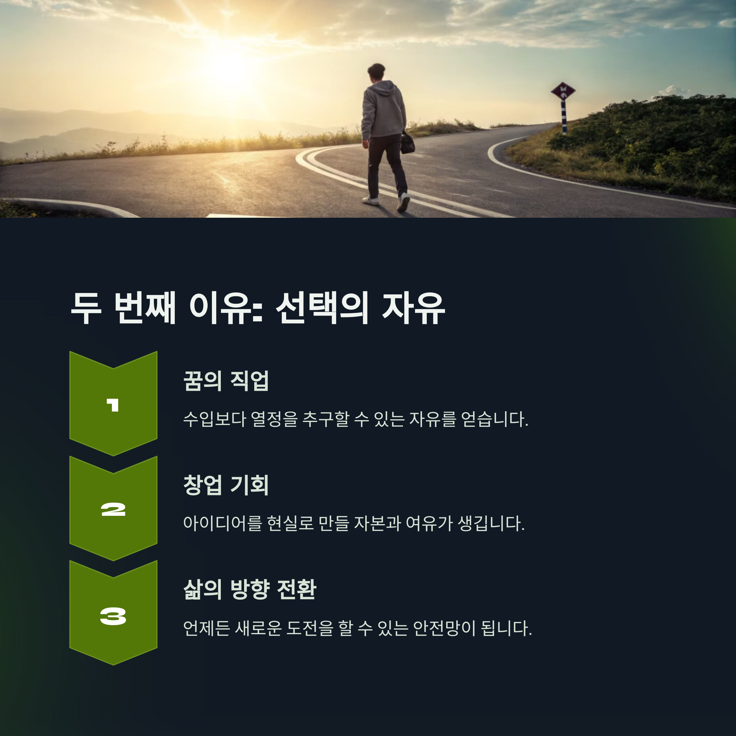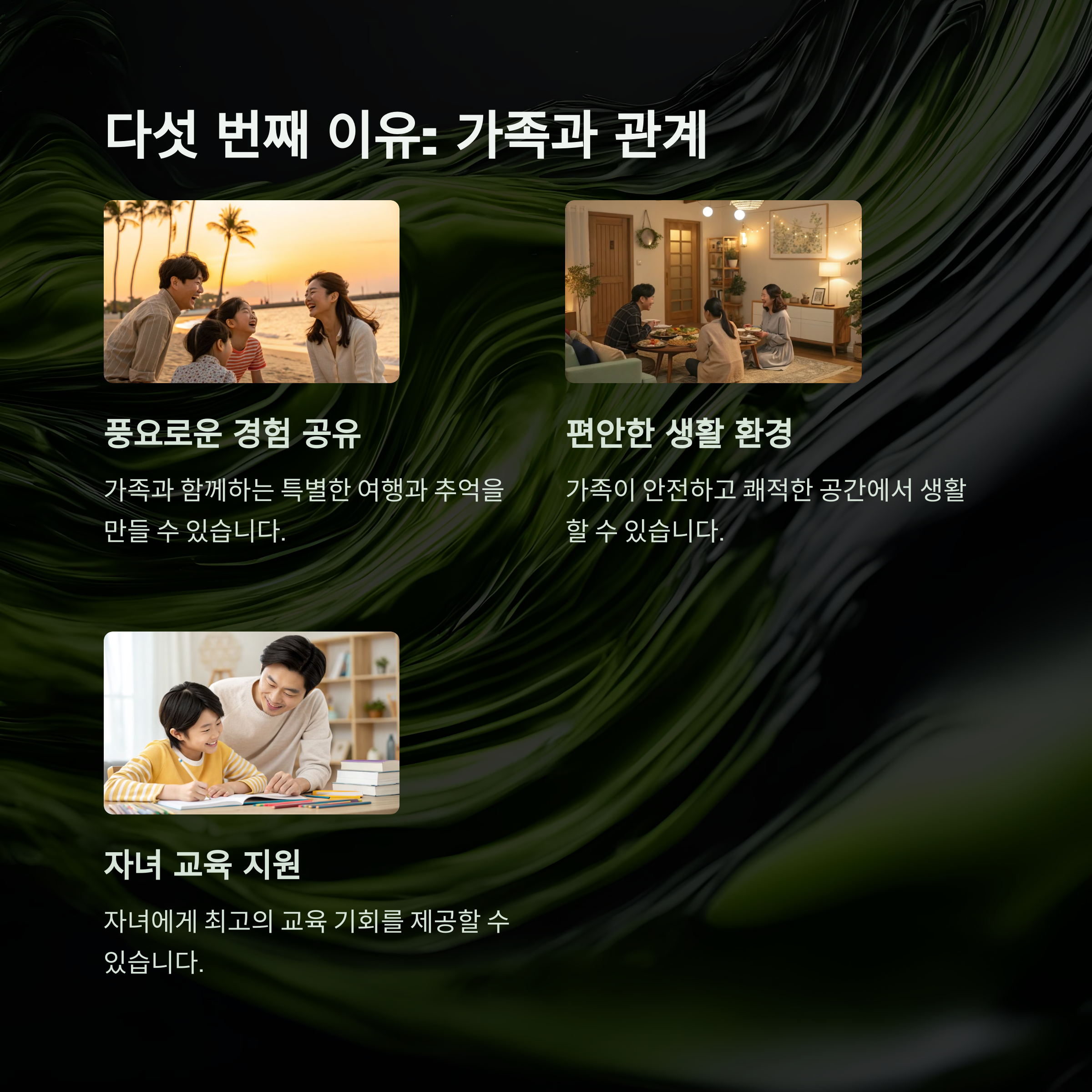 | 예기치 못한 상황에 대응 가능 | 더 나은 삶의 옵션 선택 가능 | 진심을 표현할 수 있는 수단 |