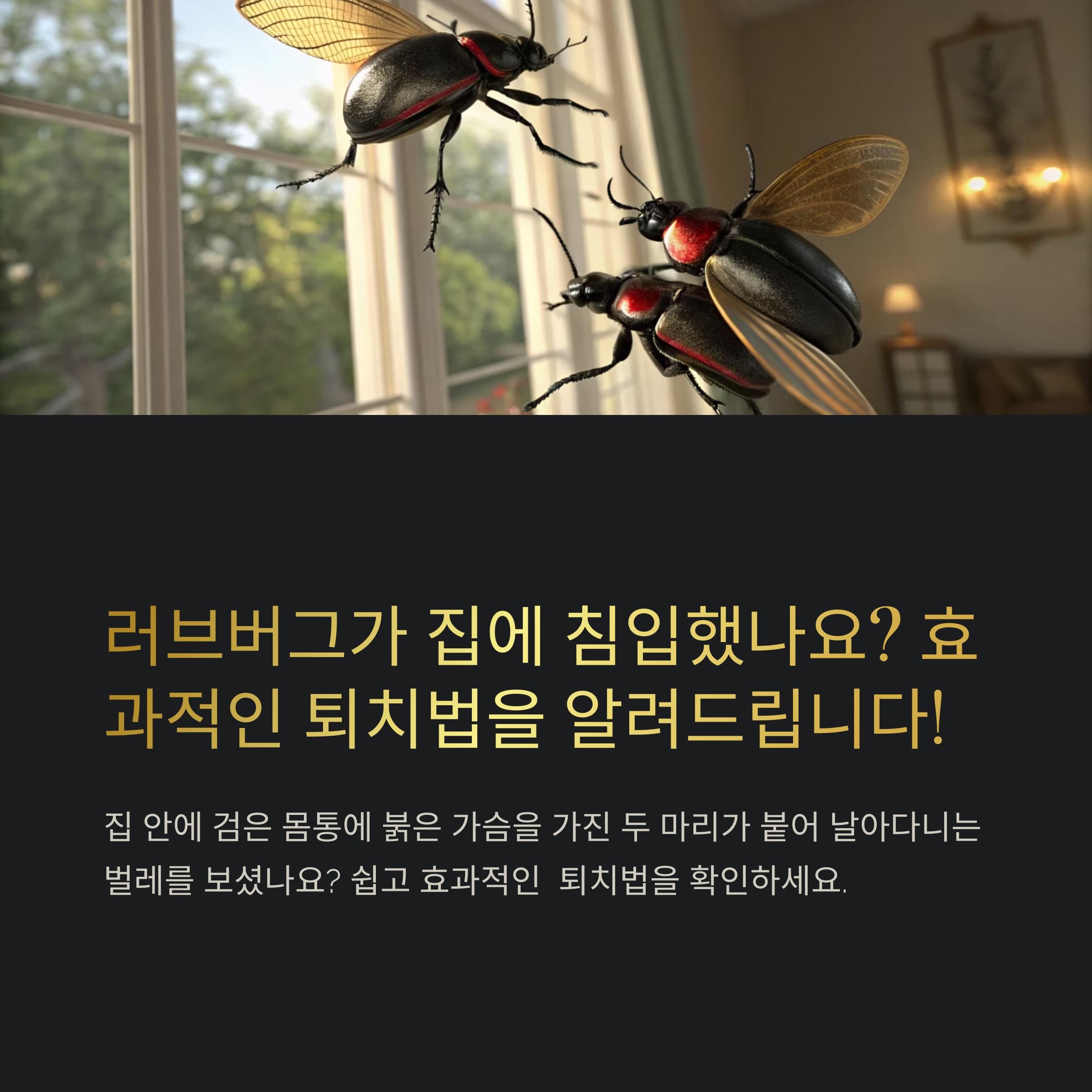 이번 글에서는 러브버그의 습성, 집안 침입 경로, 퇴치법, 청소 요령, 예방법, 유의사항, 실내 대량 발생 시 대응법까지