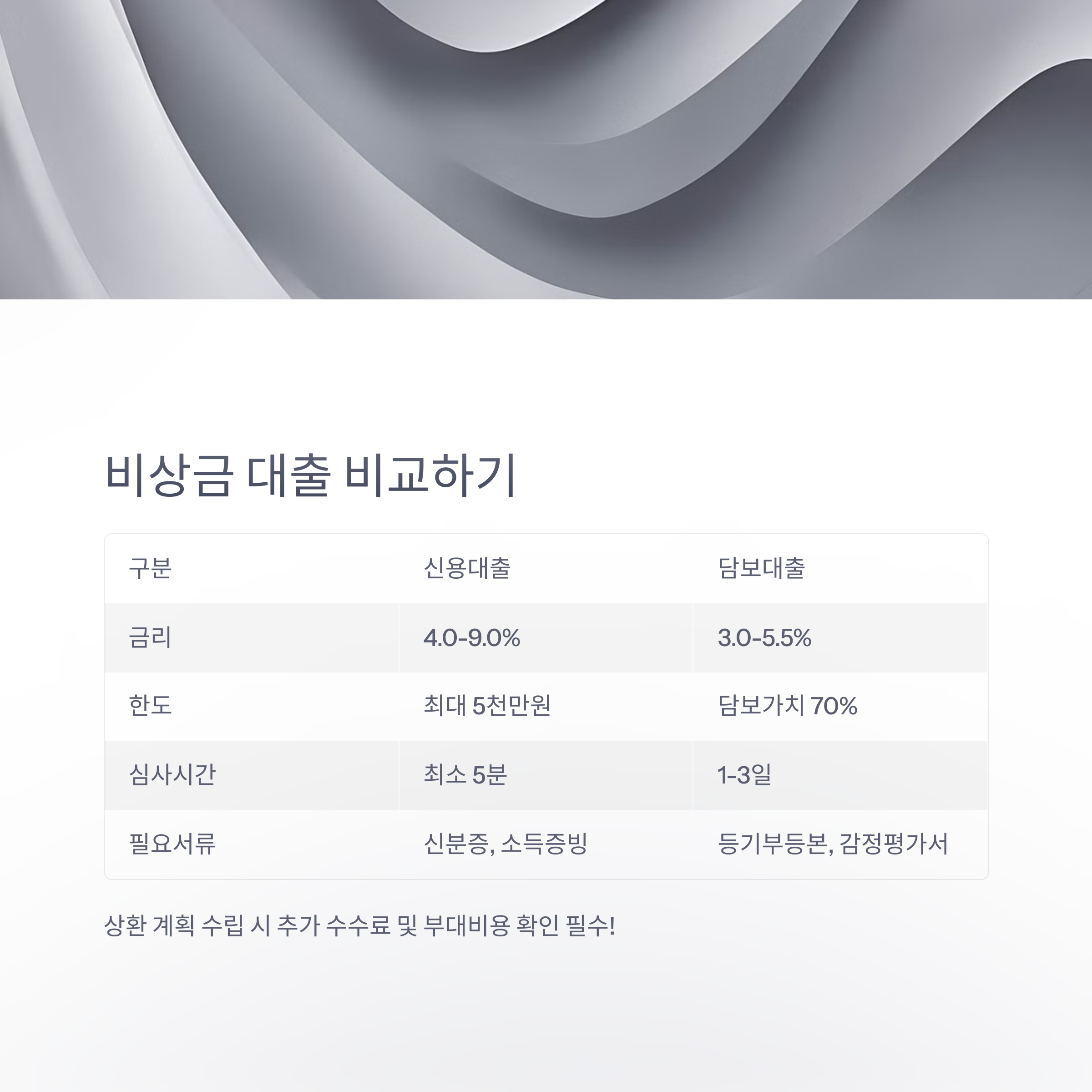 대출을 선택할 때는 금리만 보지 마시고, 전체 상환 조건과 중도상환 수수료, 연체이자율 등도 꼭 확인해야 합니다. 또한, 너무 쉽게 대출이 된다고 무작정 신청하는 것은 지양해야 하며, 자신의 상환 능력에 맞는 범위 내에서 계획적으로 접근하는 것이 중요합니다. 만약 여러 상품 간 비교가 어렵다면, 금융감독원에서 제공하는 ‘금융상품 한눈에’ 서비스를 활용하거나, 오늘 소개해드리는 TOP4 상품 리스트를 참고해보시는 것도 좋은 방법입니다.
