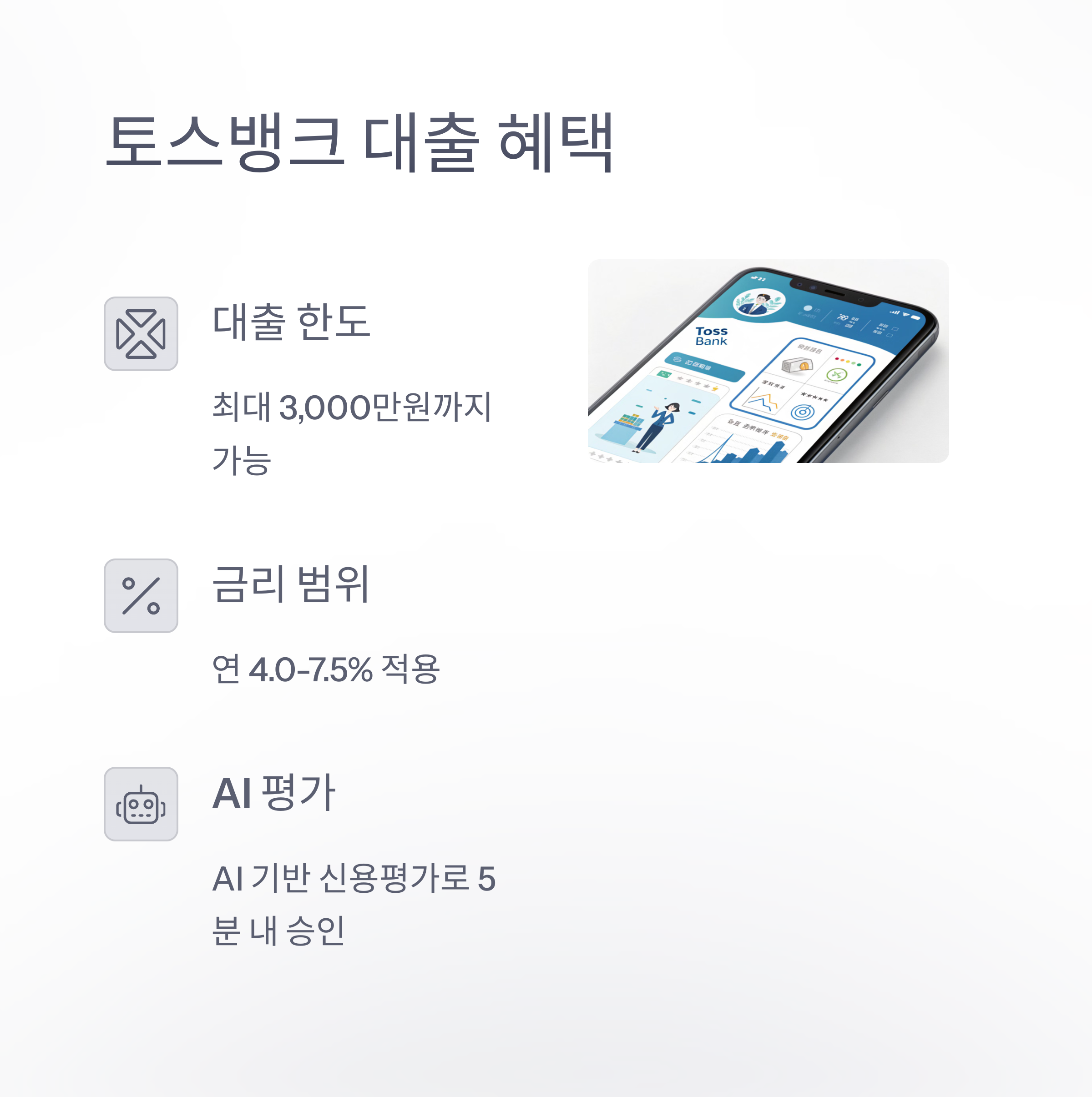 | 모바일 대출이란? | 스마트폰으로 비대면 신청 가능한 대출 서비스 |