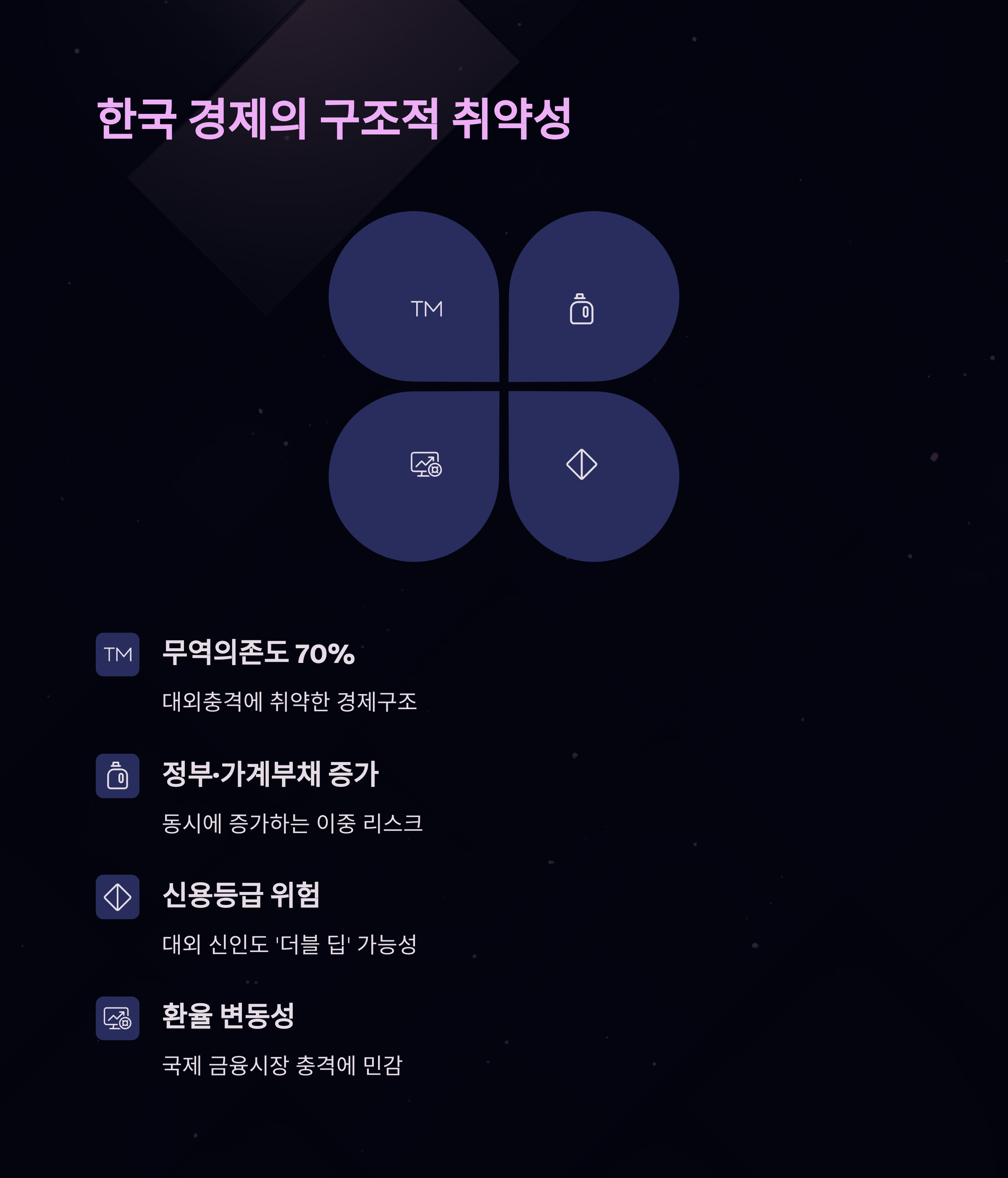 - 무역수지 불균형: 수출 둔화와 에너지 수입 증가
