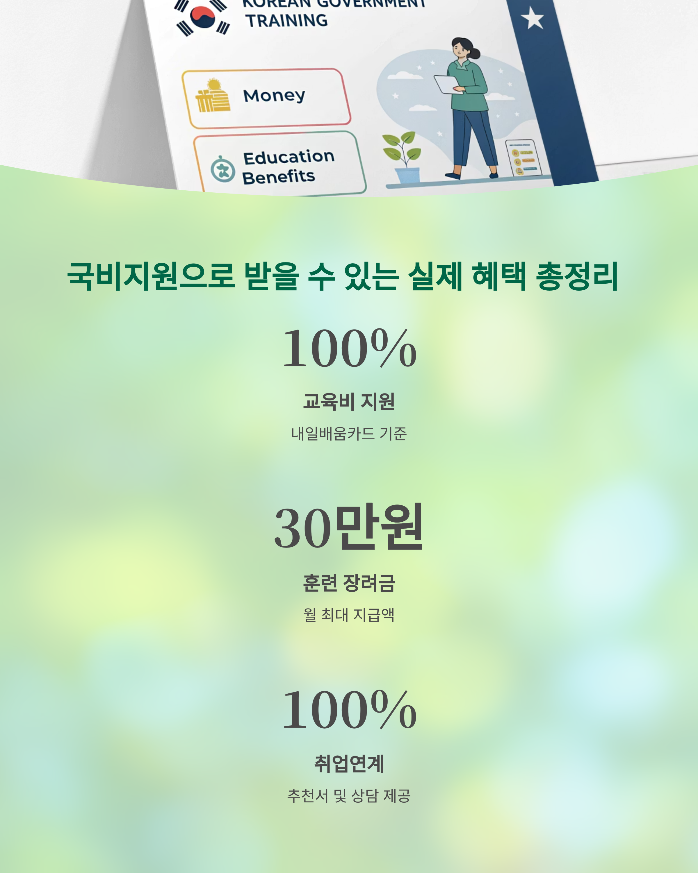 교육비 지원부터 수당, 취업 연계까지 다양한 혜택이 주어집니다.