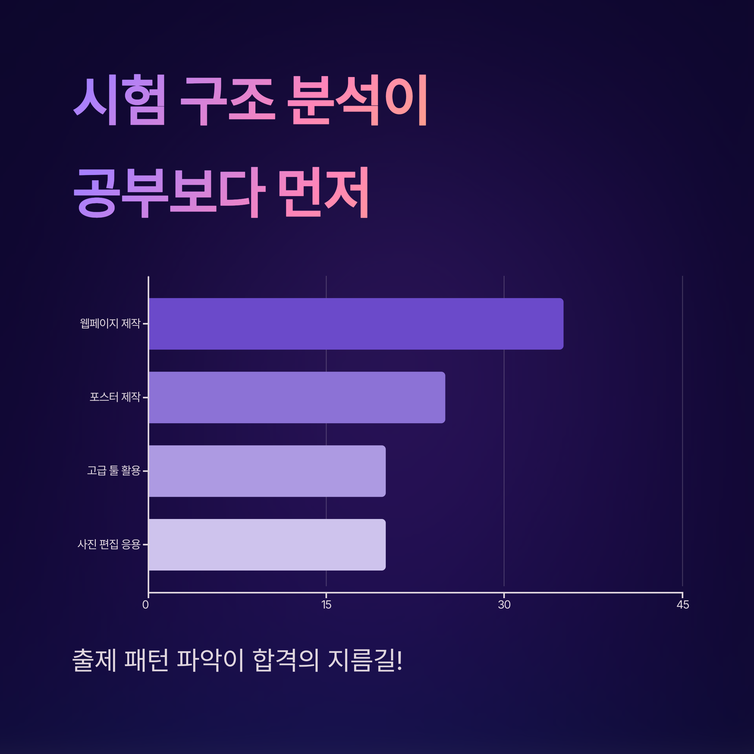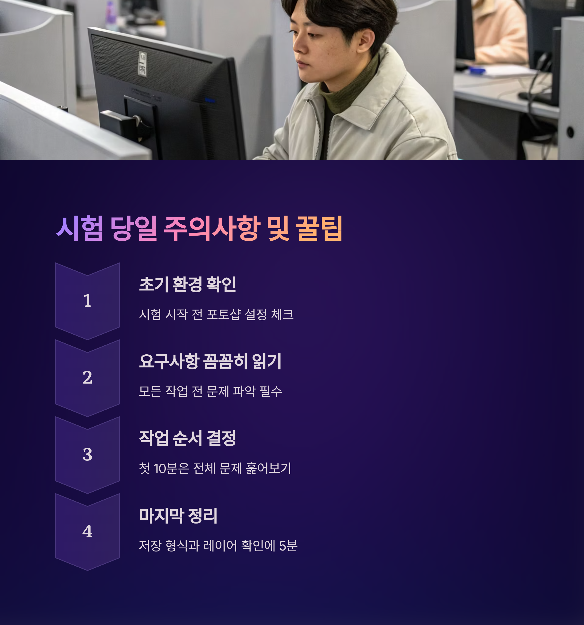 디자인 감각보다 기능 정확도와 작업 순서가 더 중요한 시험입니다.
