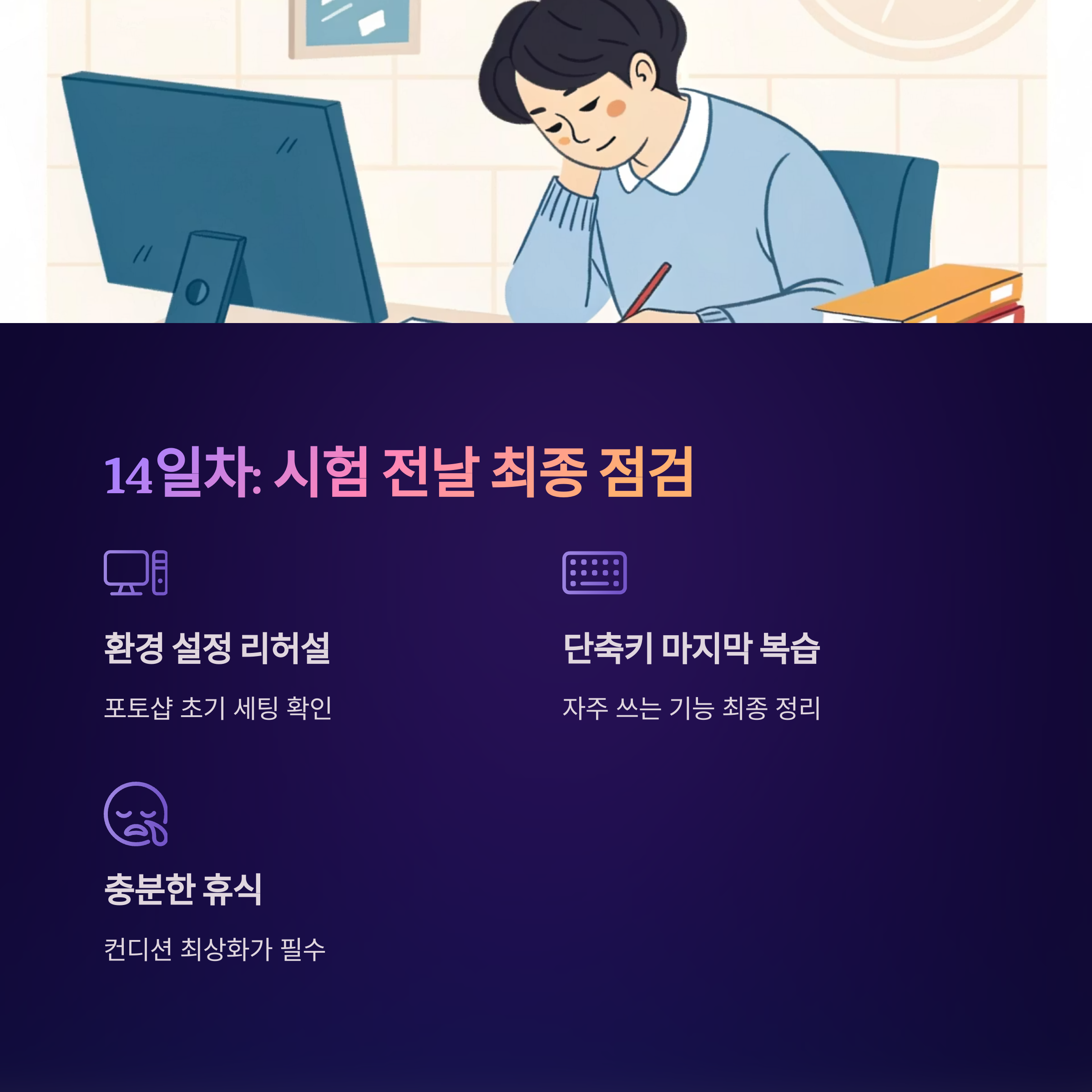 - 14일차: 시험 당일 시뮬레이션, 멘탈 유지 전략