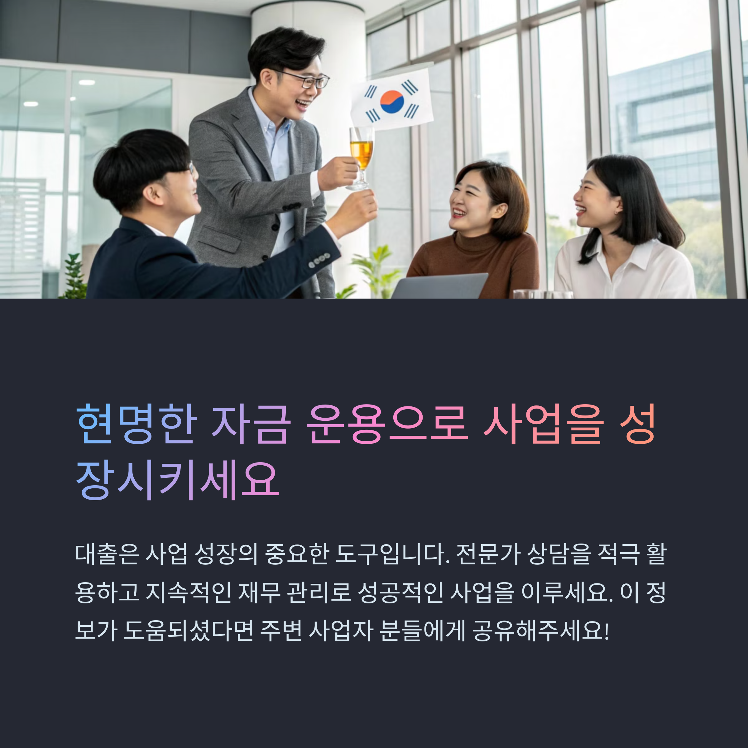 사업자 대출은 단순히 자금을 마련하는 수단 그 이상입니다. 나의 비즈니스 방향성과 지속 가능성을 뒷받침할 수 있는 중요한 선택이기에 충분한 이해와 준비가 필요합니다. 이 글을 통해 대출의 기초부터 실무 팁까지 확인하셨다면 이제는 본인의 상황에 맞는 전략을 세우는 것이 다음 단계입니다. 언제나 꼼꼼한 비교와 전문가의 조언이 좋은 결과로 이어진다는 점을 기억해주세요. 성공적인 사업 운영을 응원합니다!