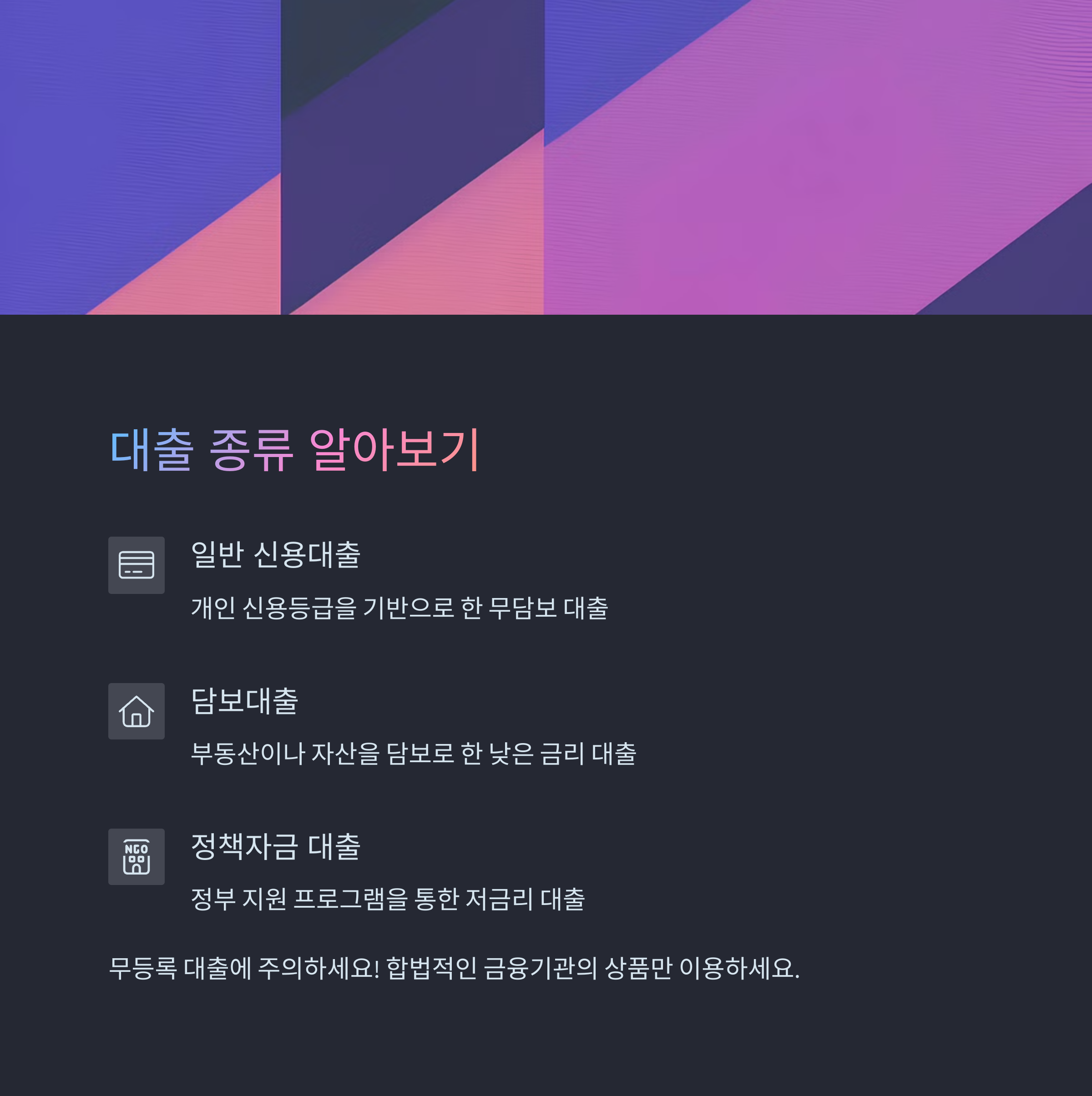 | 소득과 신용을 바탕으로 다양한 대출 가능 | 정부기관이 지원하는 저금리 대출 제도 | 신청 시 제출하면 승인률이 높아짐 |