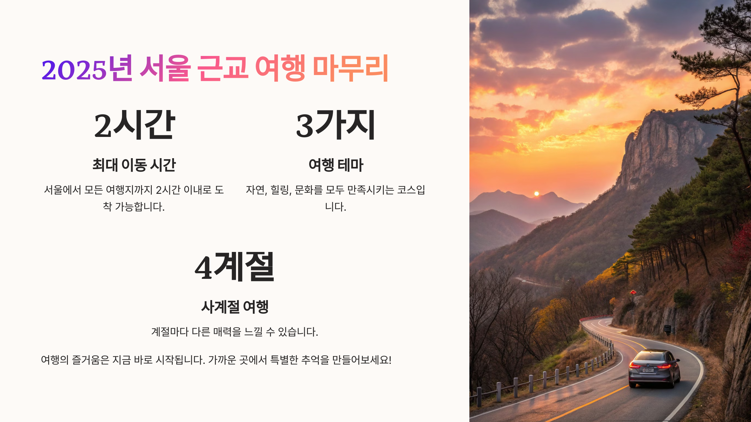 | 서울근교 나들이 | 교통 편리한 인기 명소로 간편하게 떠나보세요 |