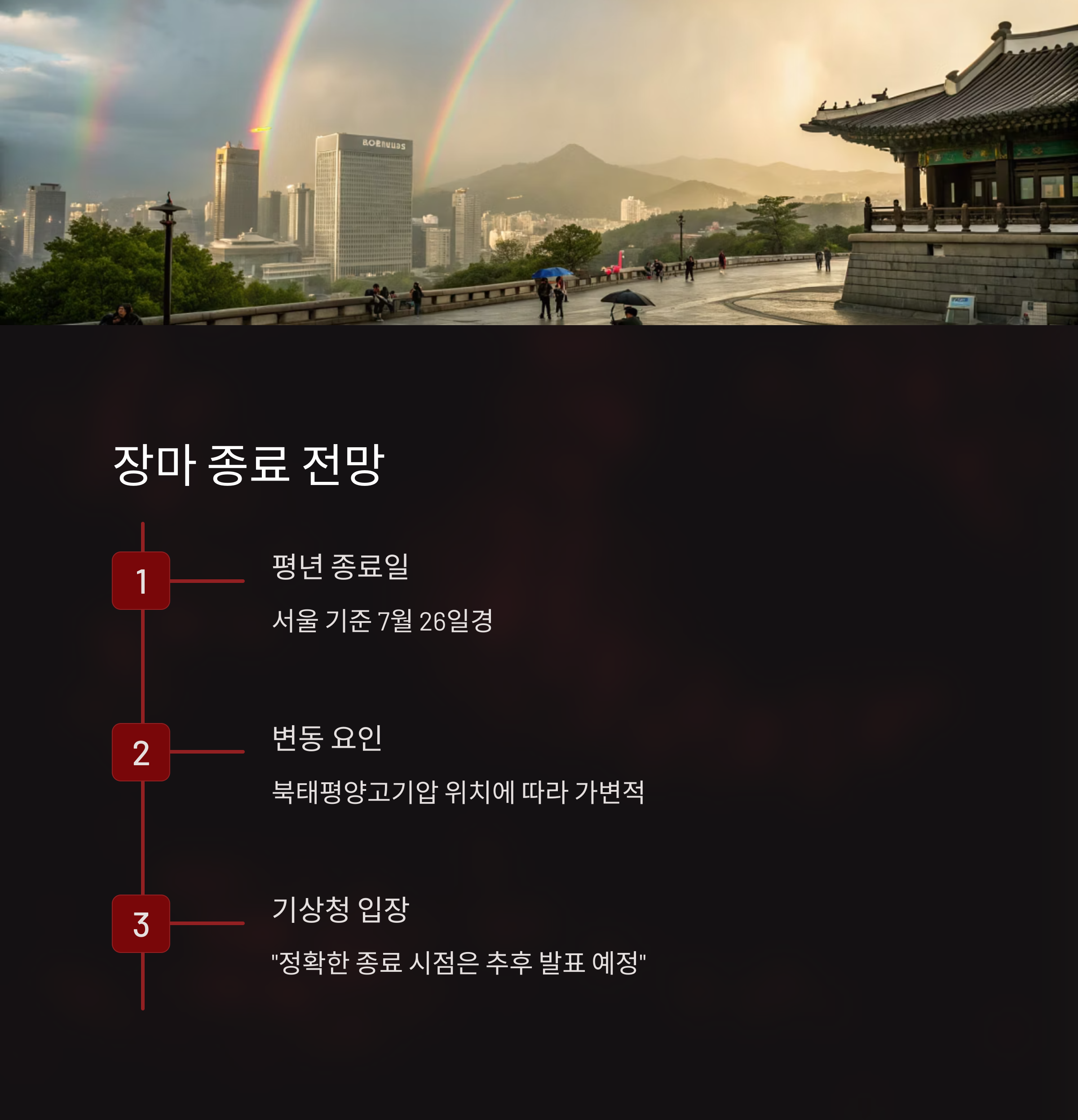 예상 못 했던 폭우에 하루하루가 불안하시죠? 요즘 같은 장마철엔 출근길도, 나들이도 모두 신경 쓰이기 마련인데요. 오늘은 서울의 장마 현황과 앞으로의 비 소식, 그리고 장마 종료 예상 시기까지 모두 알아보겠습니다.