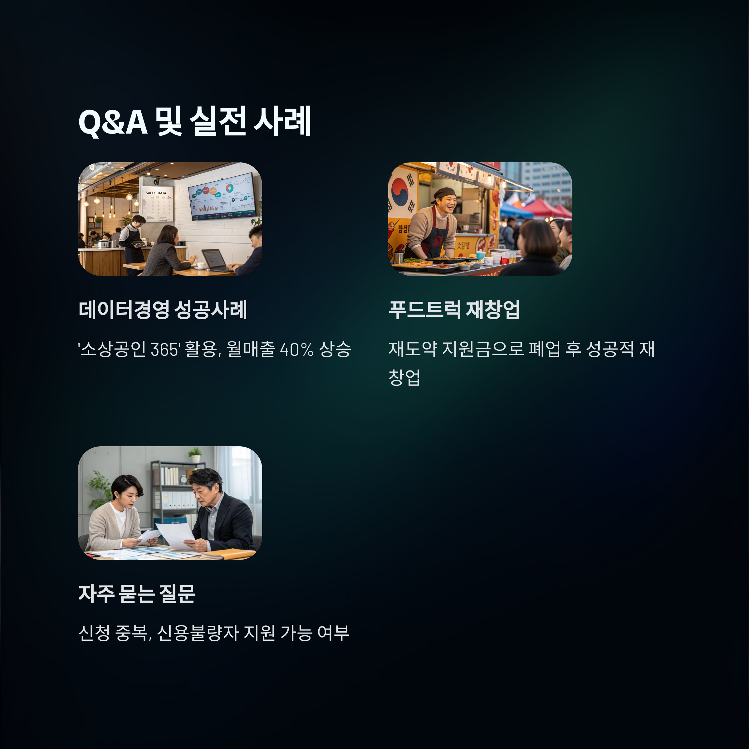 두 정책 모두 2025년 소상공인의 실질적인 경영 안정과 재기를 위해 설계되었습니다. 특히 AI 분석 시스템과 무료 컨설팅, 창업 교육 등의 비금전적 지원은 큰 장점으로 꼽힙니다.