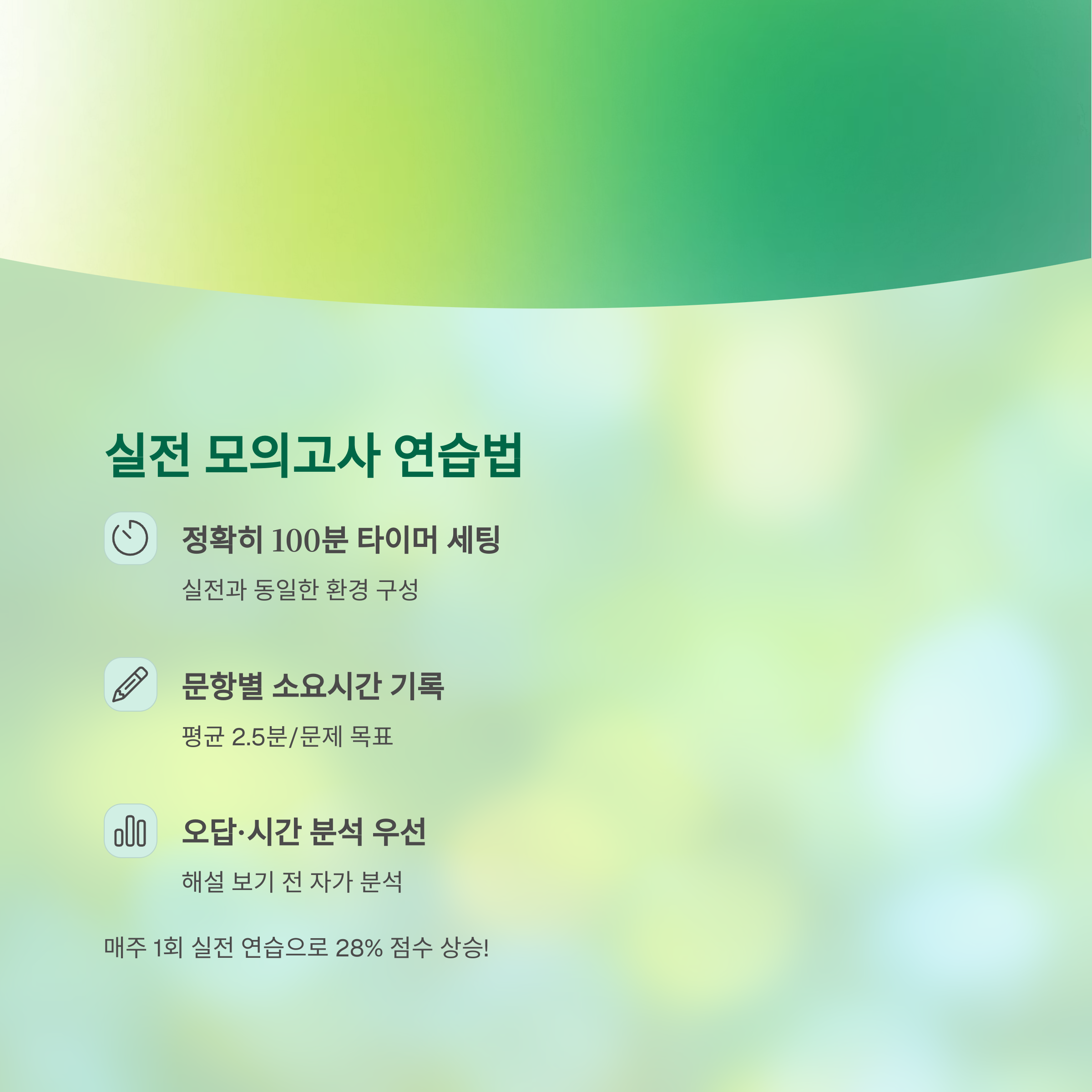| 시간 통제 | 100분 타이머 사용 | 중간 휴식 금지 |
