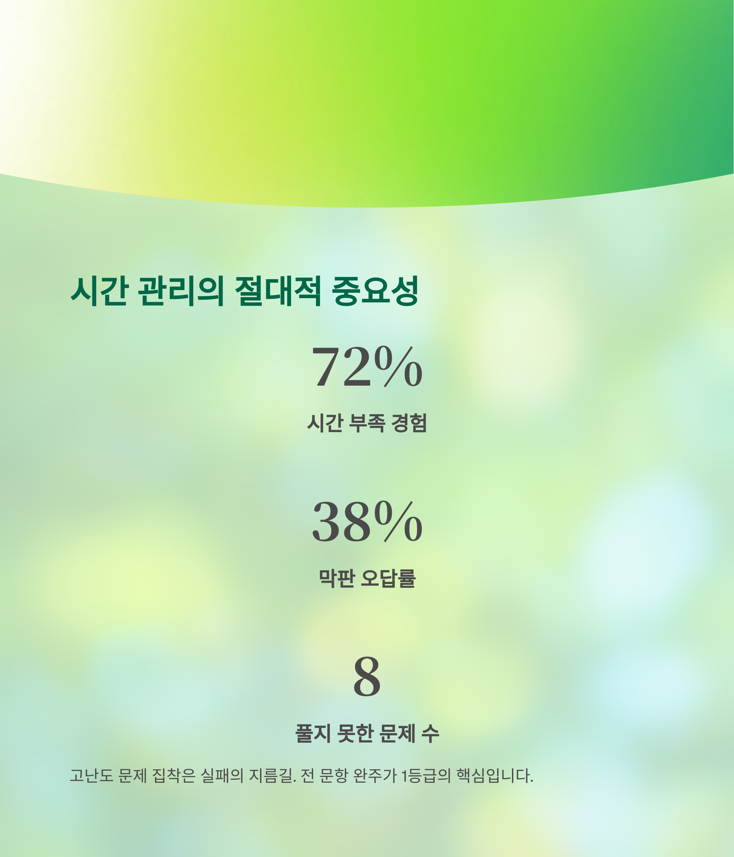 시간 관리 실패는 결국 높은 난이도 문제를 접할 기회조차 잃게 만듭니다.