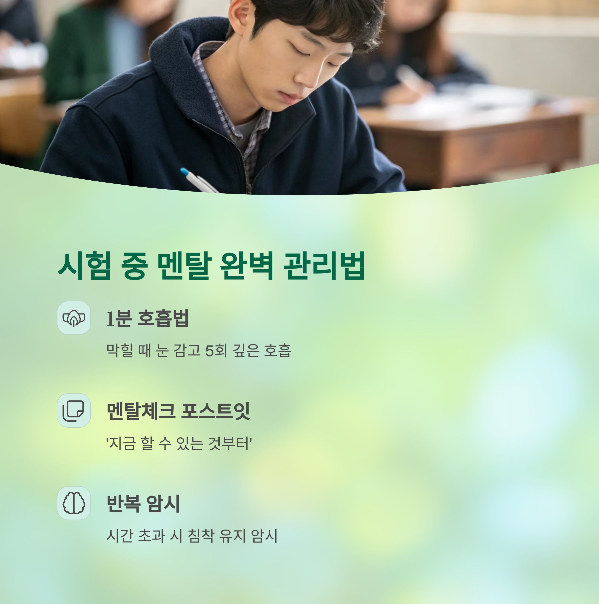 - 시험 중 멘탈 관리 비법