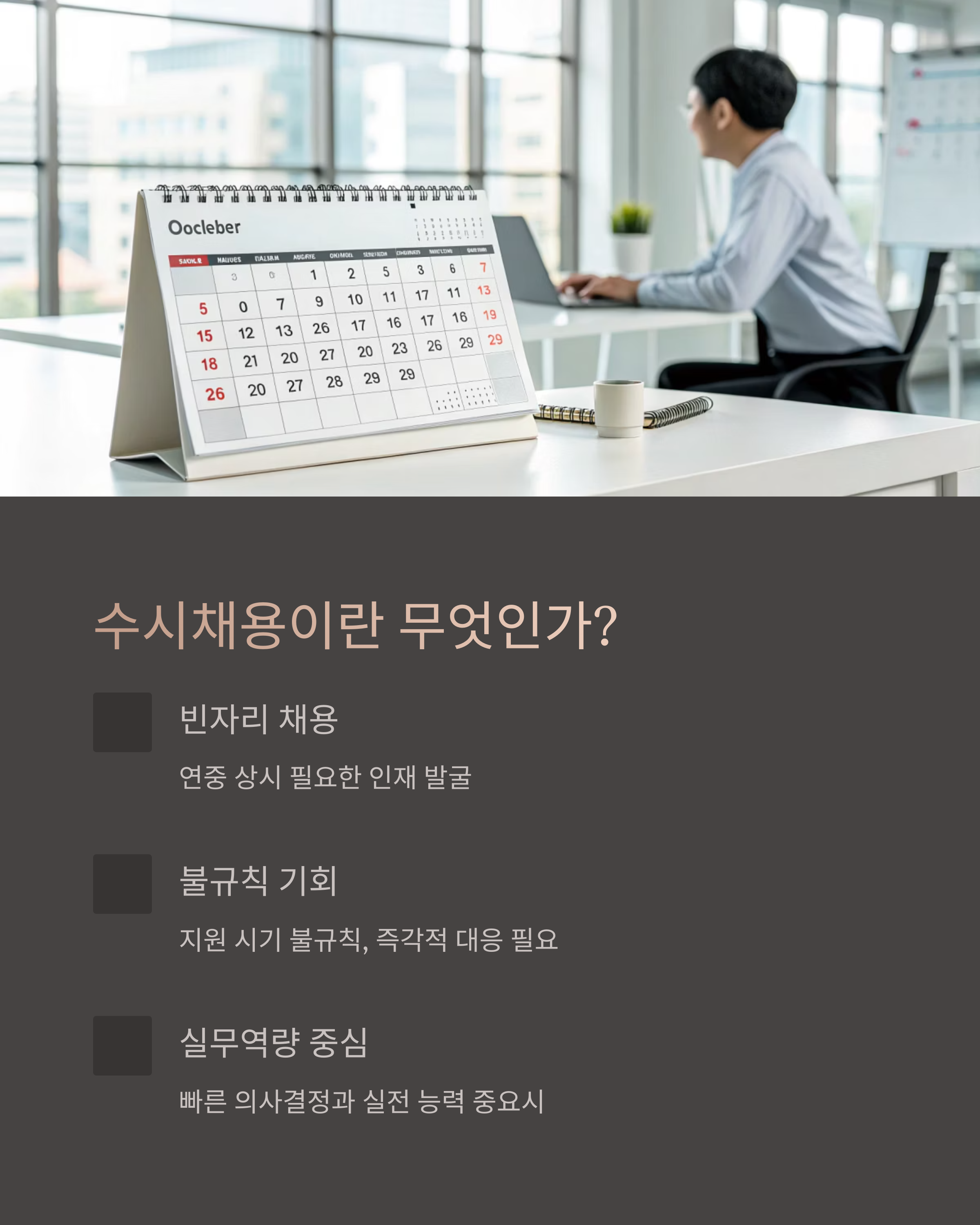 수시채용은 더 이상 예외가 아닌 표준입니다.