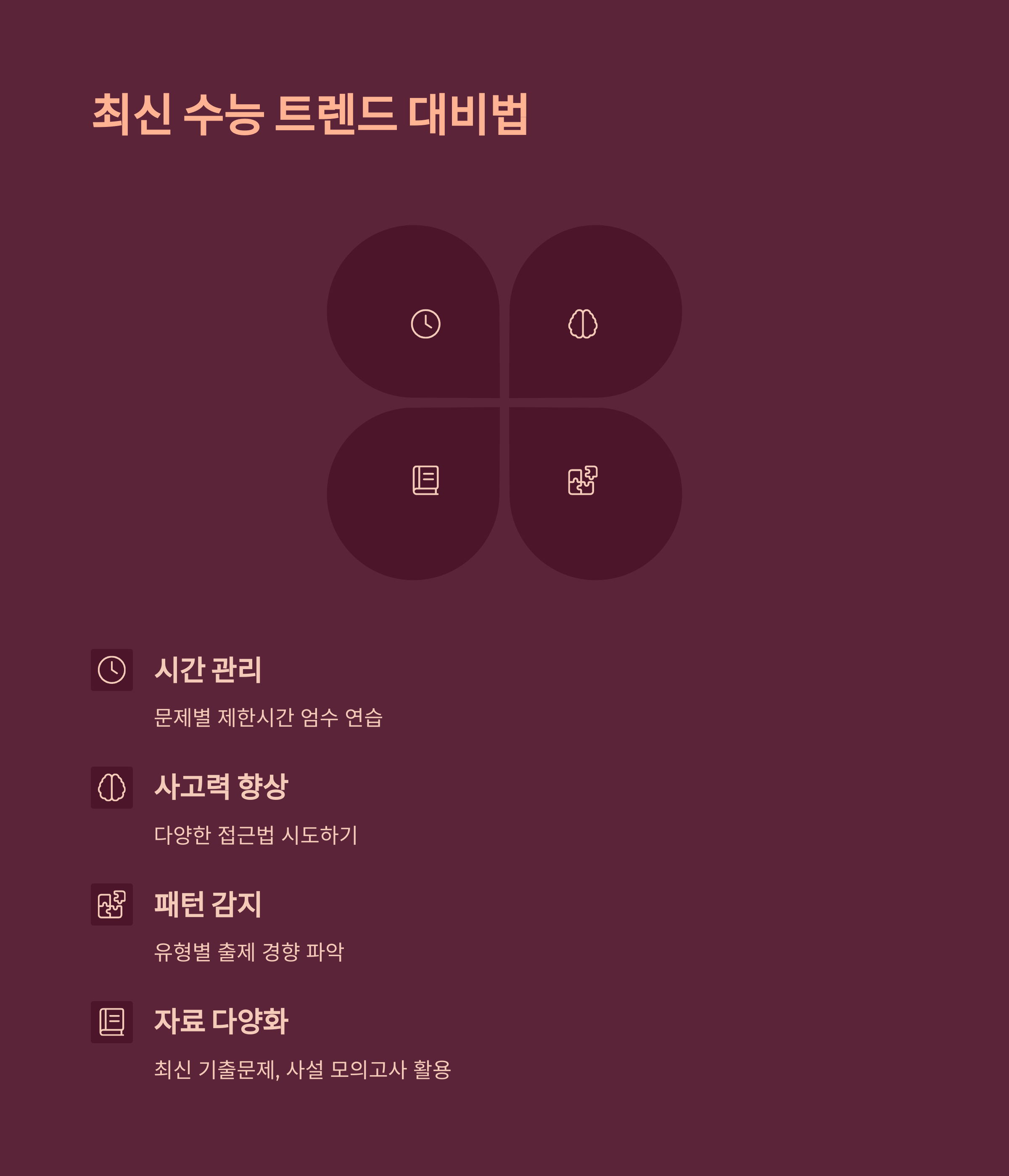 특히 최근 수능은 시간 싸움 + 사고력 + 패턴 파악이 동시에 요구되기 때문에