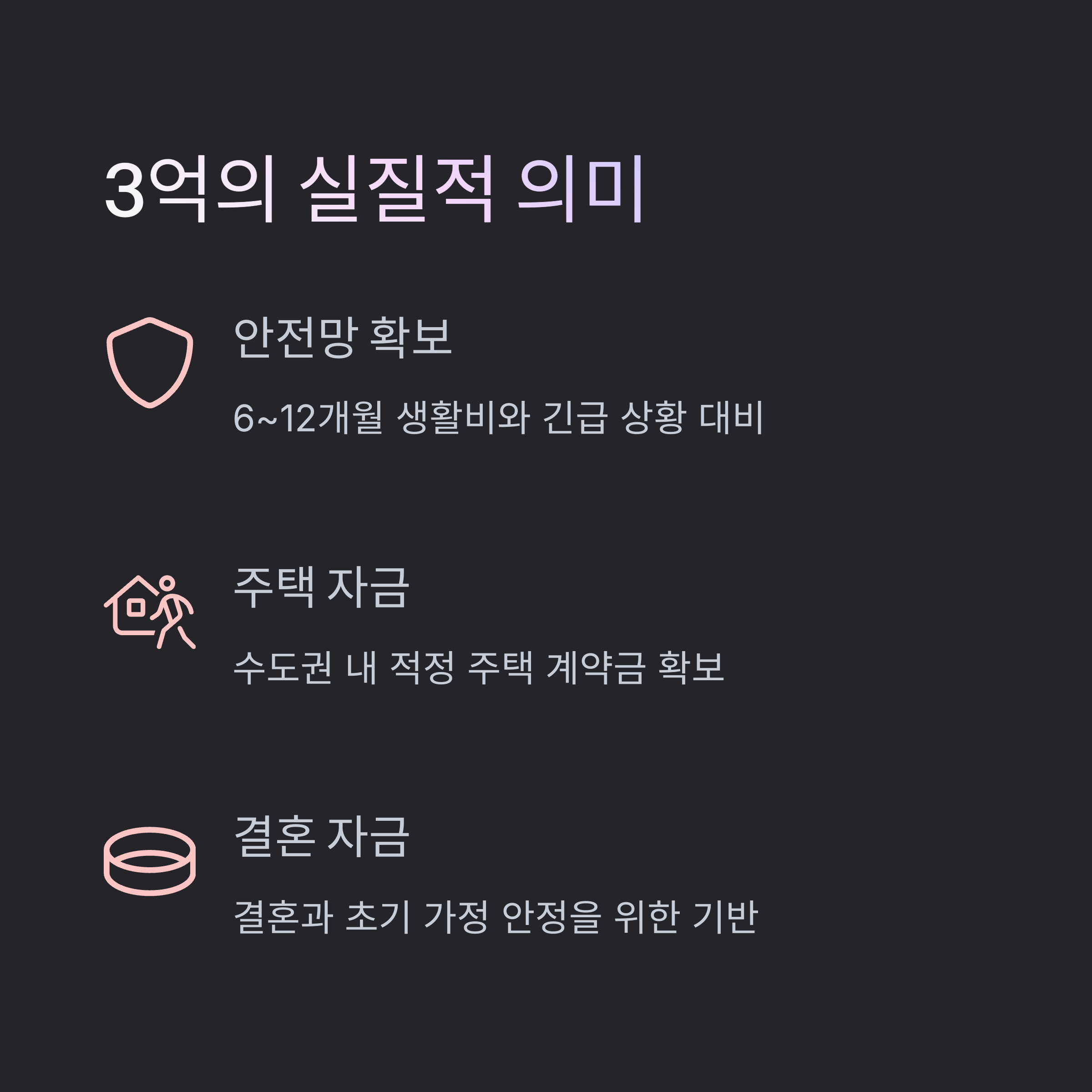 | 순자산 3억의 의미 | 은퇴, 결혼, 주거 안정 등 다양한 기준선 역할 |