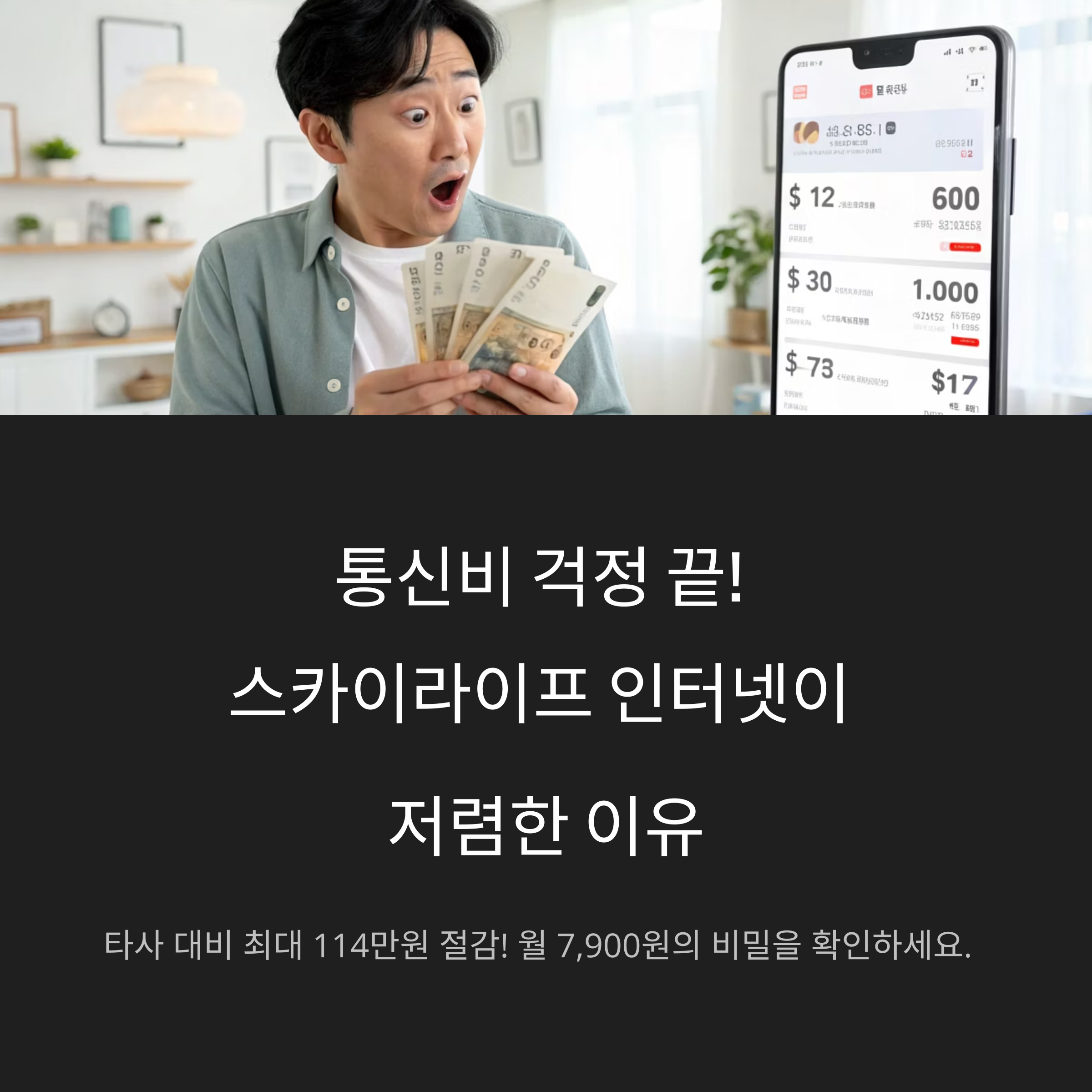 스카이라이프 인터넷 (월 7,900원) 타사보다 최대 114만원 저렴한 이유는?