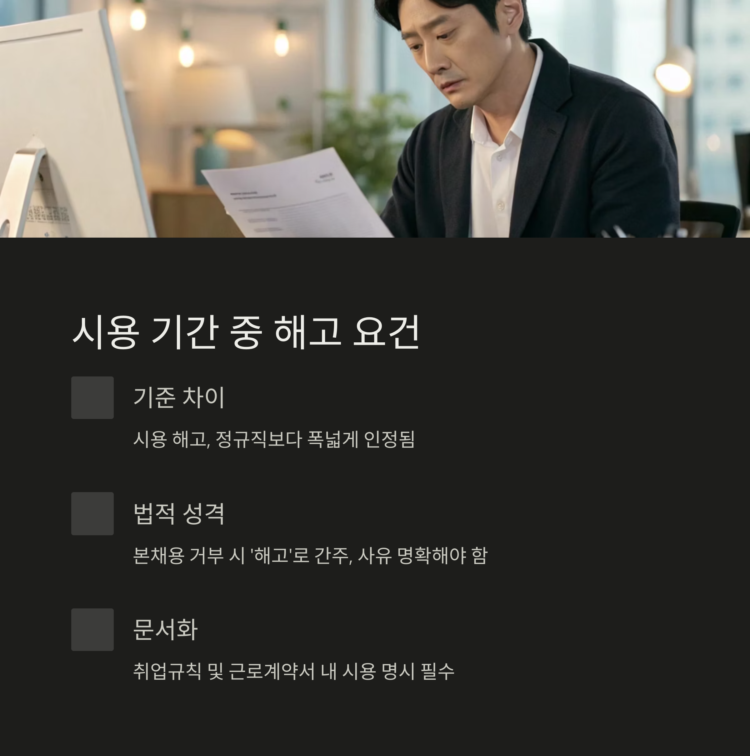 #시용수습해고 #수습종료근로관계 #부당해고예방 #근로계약해지요건 #노무관리전략 #수습기간해고절차