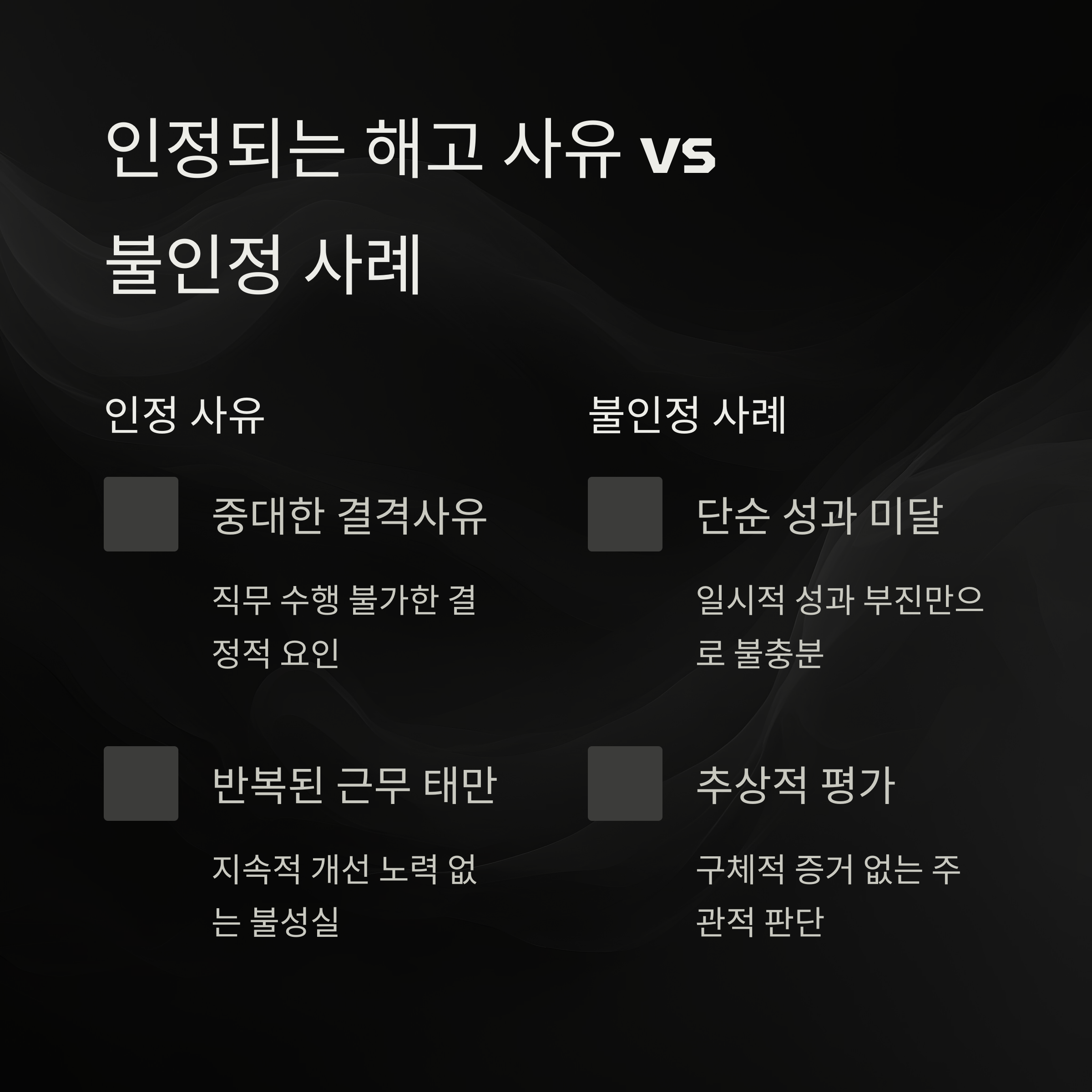 | 주요 예시 | 심각한 성과 부족, 근무 태도 문제 |