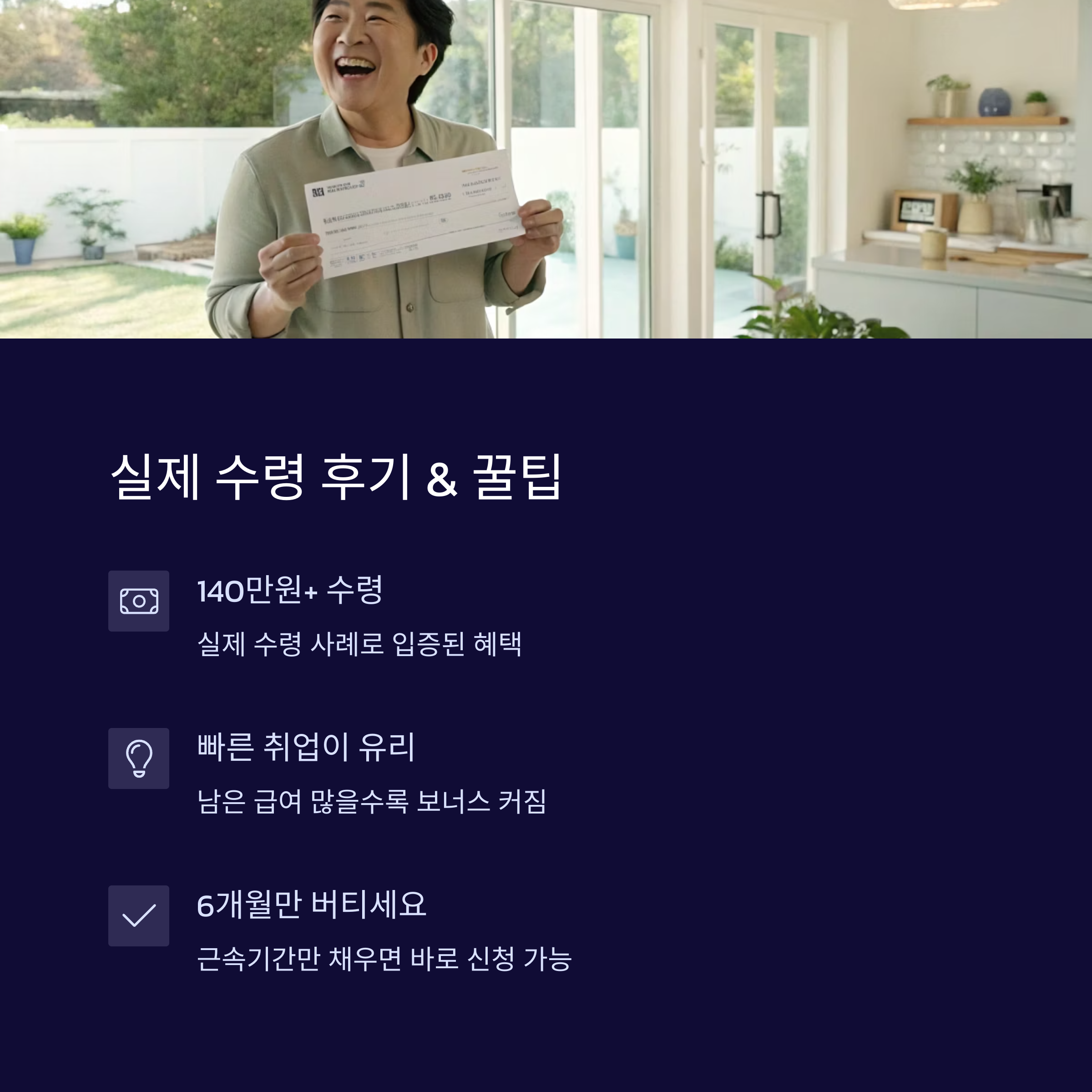 💡 TIP: 실업급여를 1회 이상 수령하고, 절반 이상 남은 상태에서 취업해야 조기재취업수당 대상이 됩니다!
