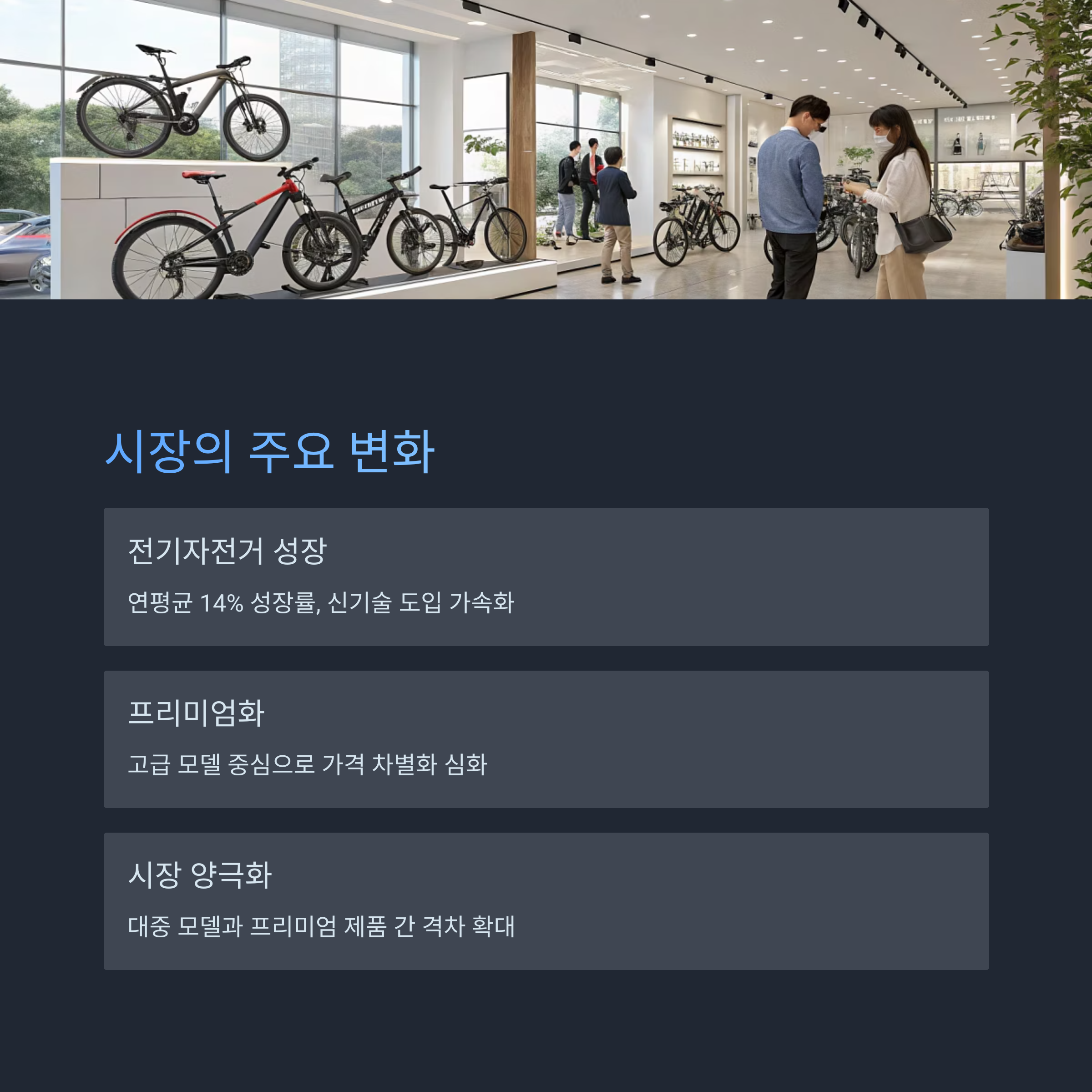 일상생활에서 자전거의 활용도가 높아지면서, 프리미엄 모델에 대한 수요도 함께 증가하고 있다는 점도 중요한 포인트입니다.