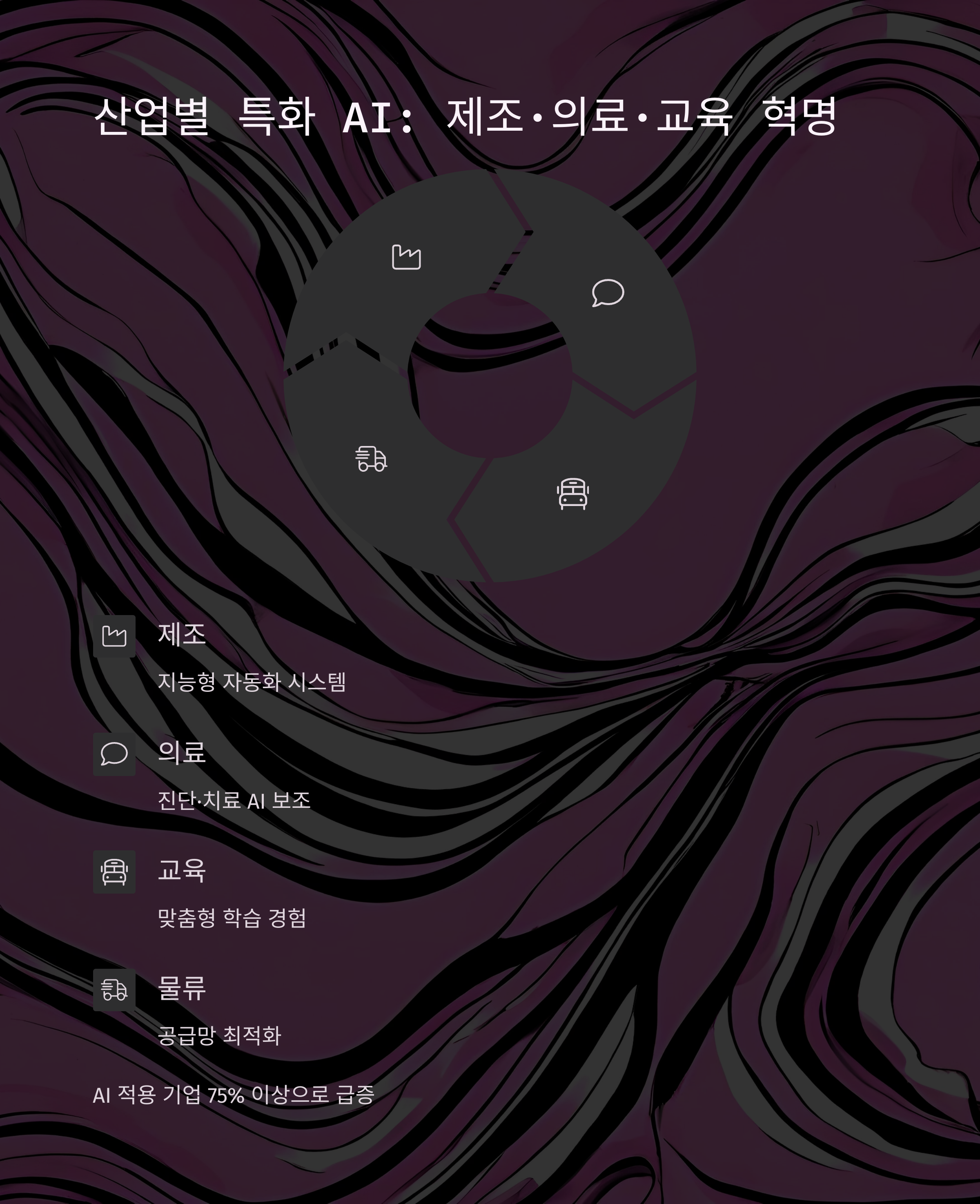 AI는 일반적 응용을 넘어 각 산업군에 최적화되어 침투하고 있습니다.