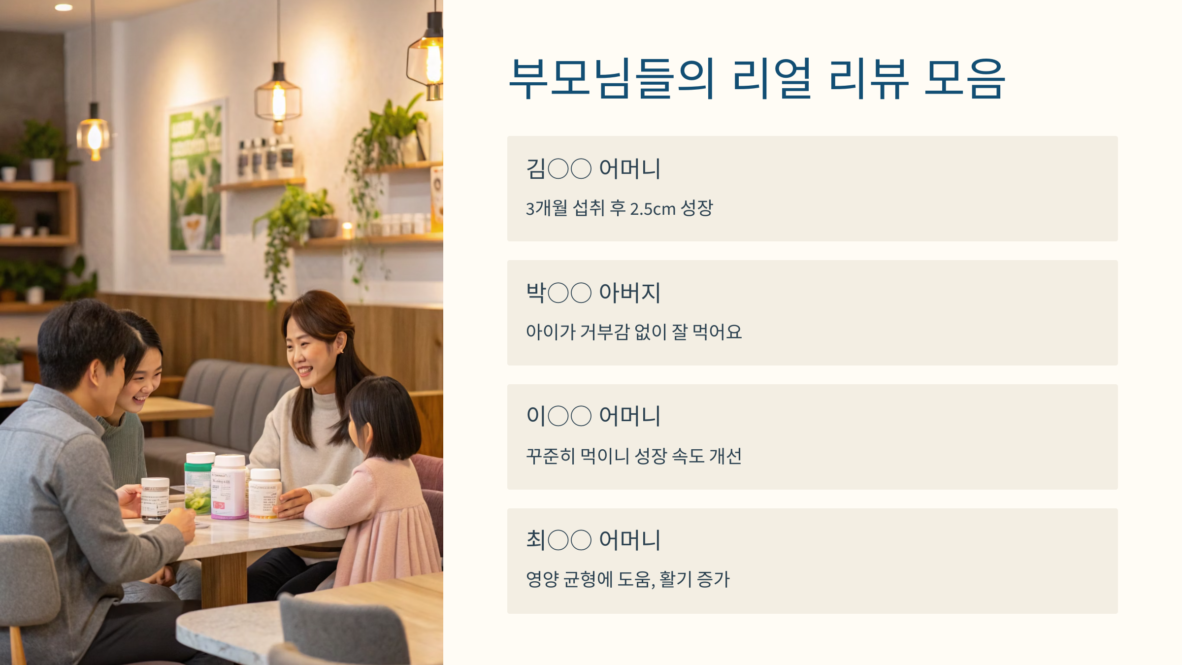 - "3개월 만에 키 4cm 이상 자라서 만족해요."