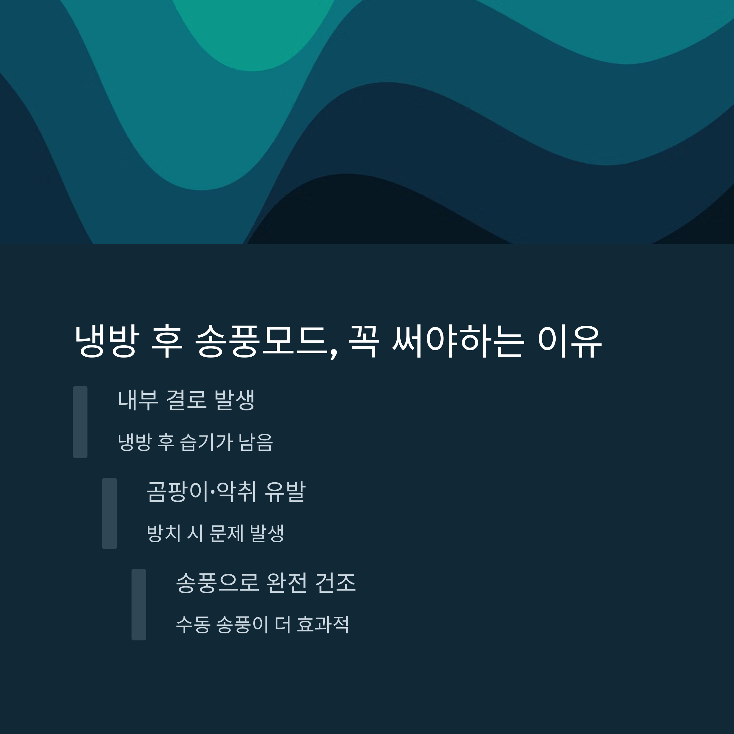 - 송풍모드는 냉방기능의 보조가 아니라, 후속 정리 기능으로 반드시 필요합니다.