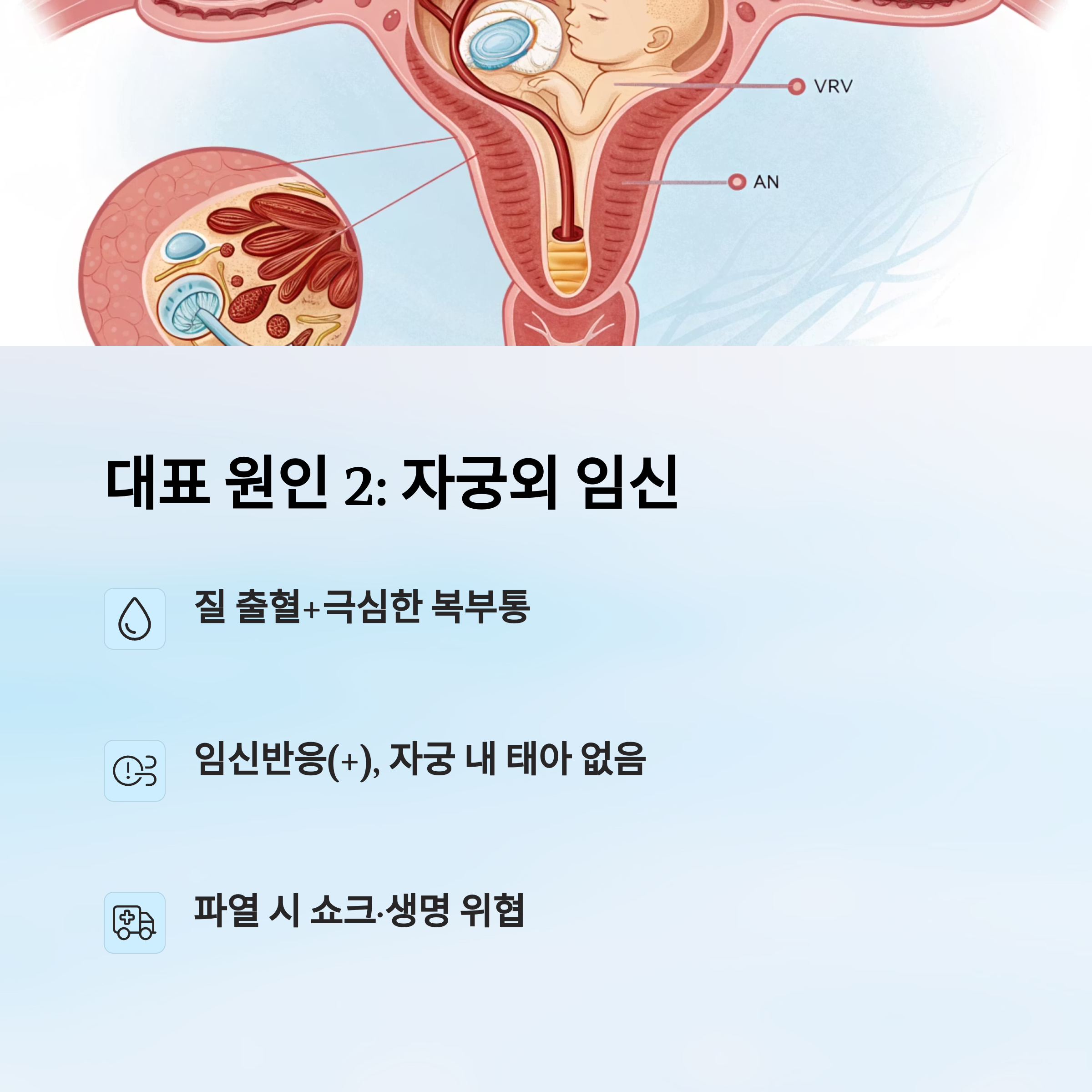 | 생리 지연 + 출혈 | 자궁외 임신 |