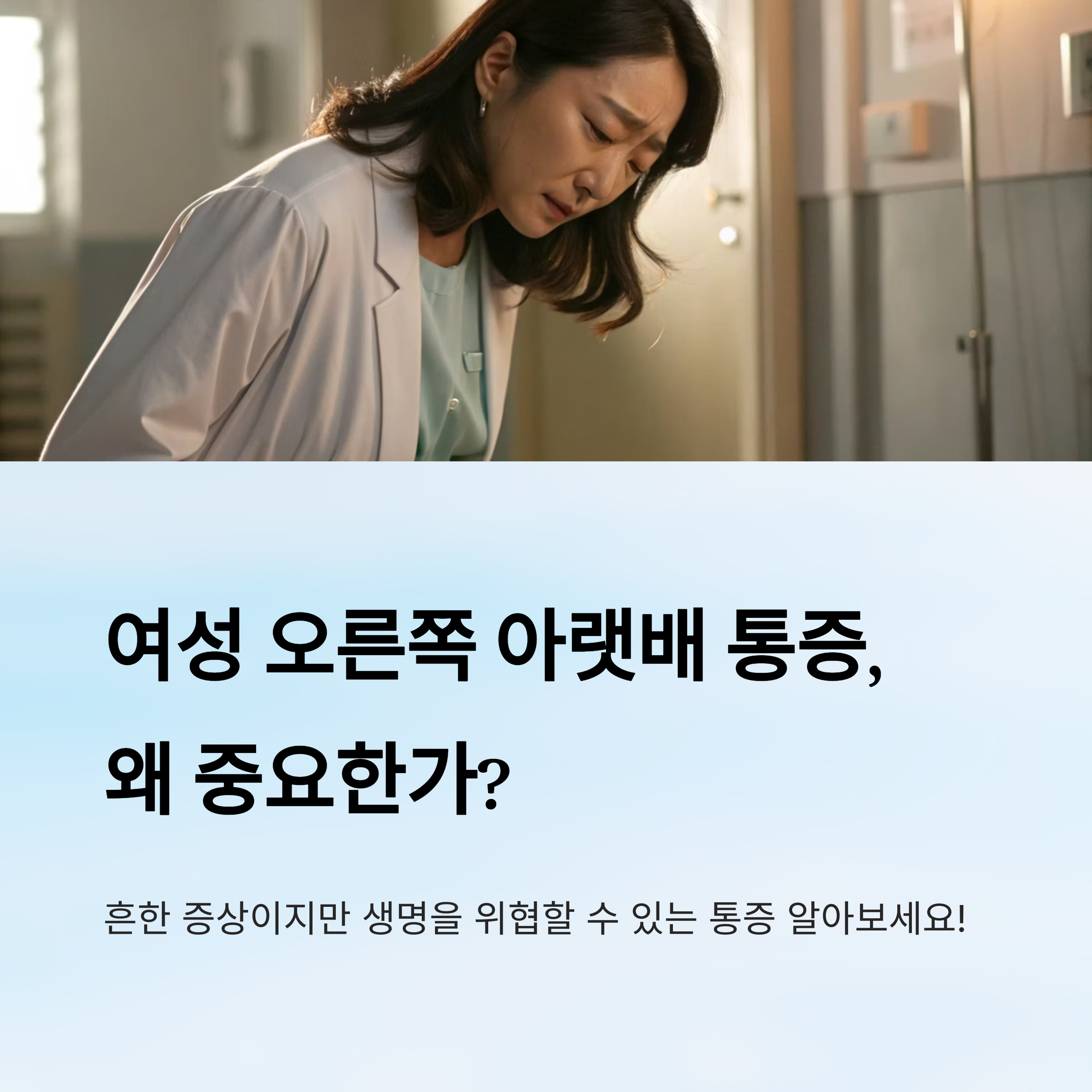 여성의 오른쪽 아랫배 통증은 생리통처럼 흔한 증상일 수 있지만, 때로는 생명을 위협하는 응급 질환의 전조일 수 있습니다. 정확한 원인 파악과 빠른 대처가 중요한 이유를 증상별로 구체적으로 알아보겠습니다.