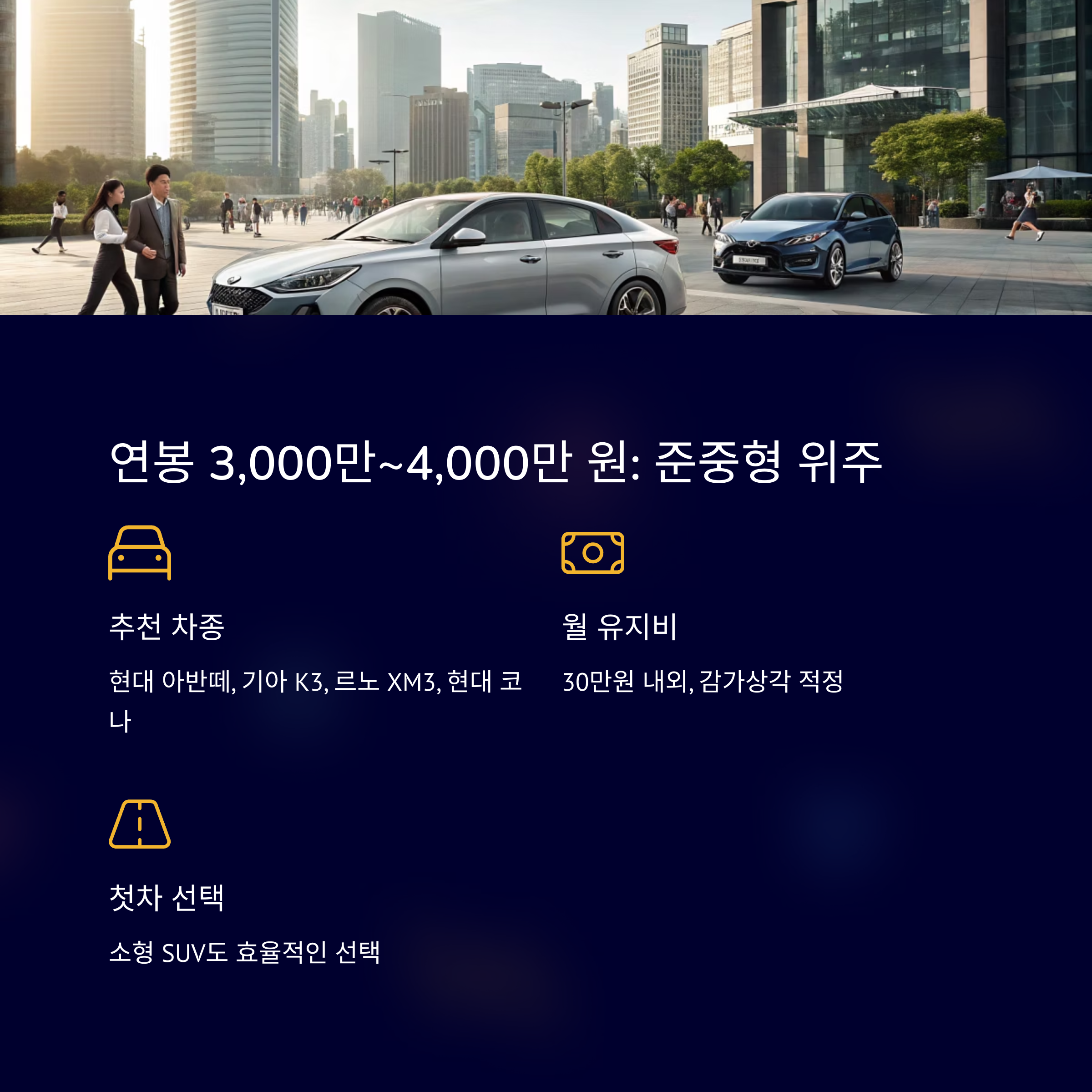 따라서 차량 구입은 ‘구매가 + 연간 유지비’로 계산해야 실수 없습니다.