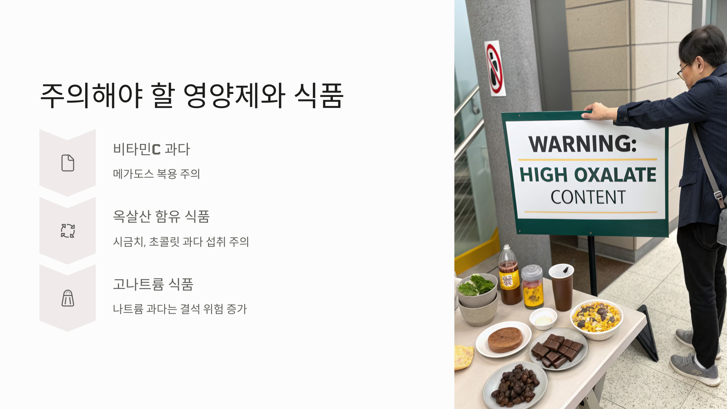 - 마그네슘: 칼슘과 옥살산 결합을 막아 결석 형성을 억제합니다.